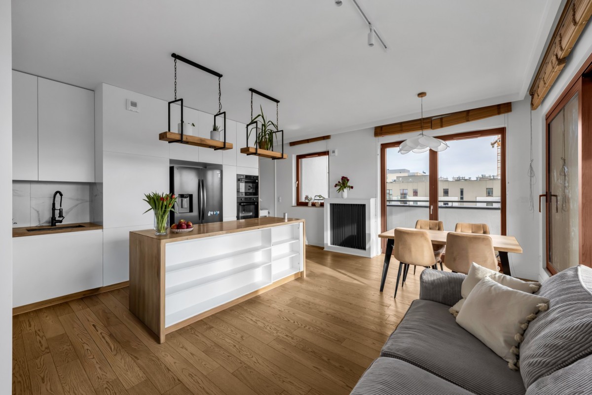 Na sprzedaż umeblowany, przestronny 3-pokojowy apartament o powierzchni 75 m², TARASEM 85 m² oraz dodatkowymi balkonami na 7. piętrze nowoczesnej inwestycji Moduo Gardens z 2021 roku, zlokalizowanej przy ul. Postępu. Mieszkanie znajduje się na ostatnim piętrze w związku z tym wysokość pomieszczeń to aż 2.9 m. Apartament o idealnym układzie, w pełni wyposażony, nie wymagajacy żadnych nakładów finansowych.