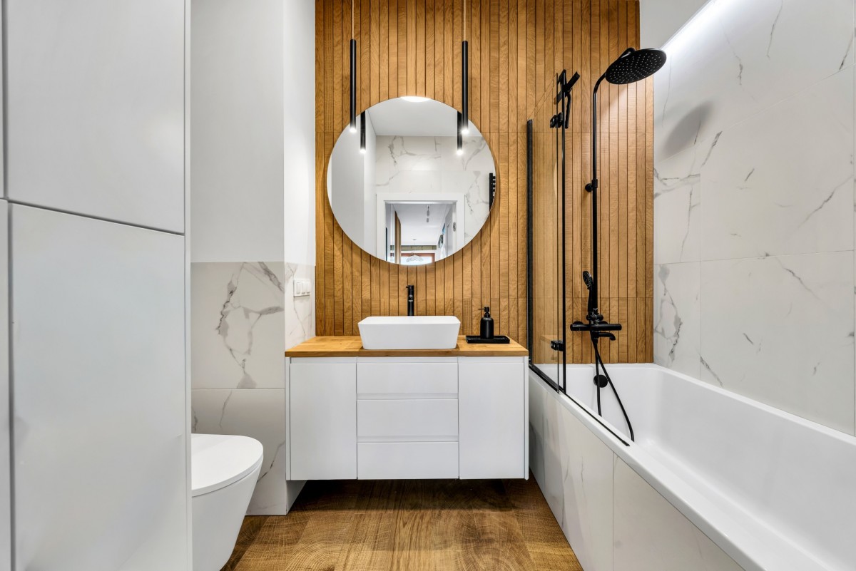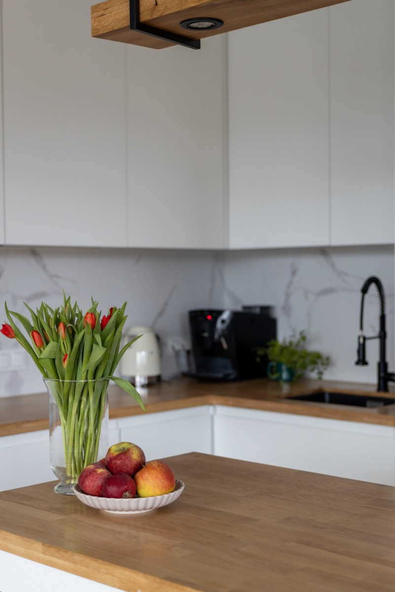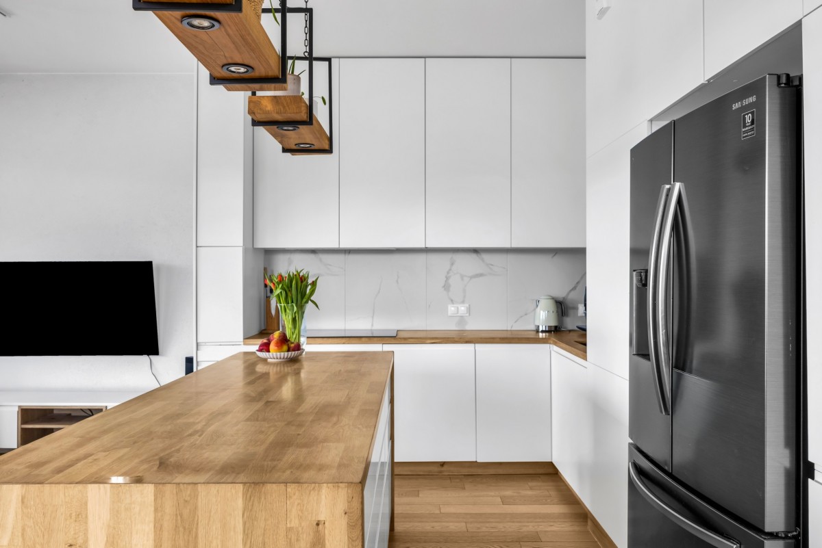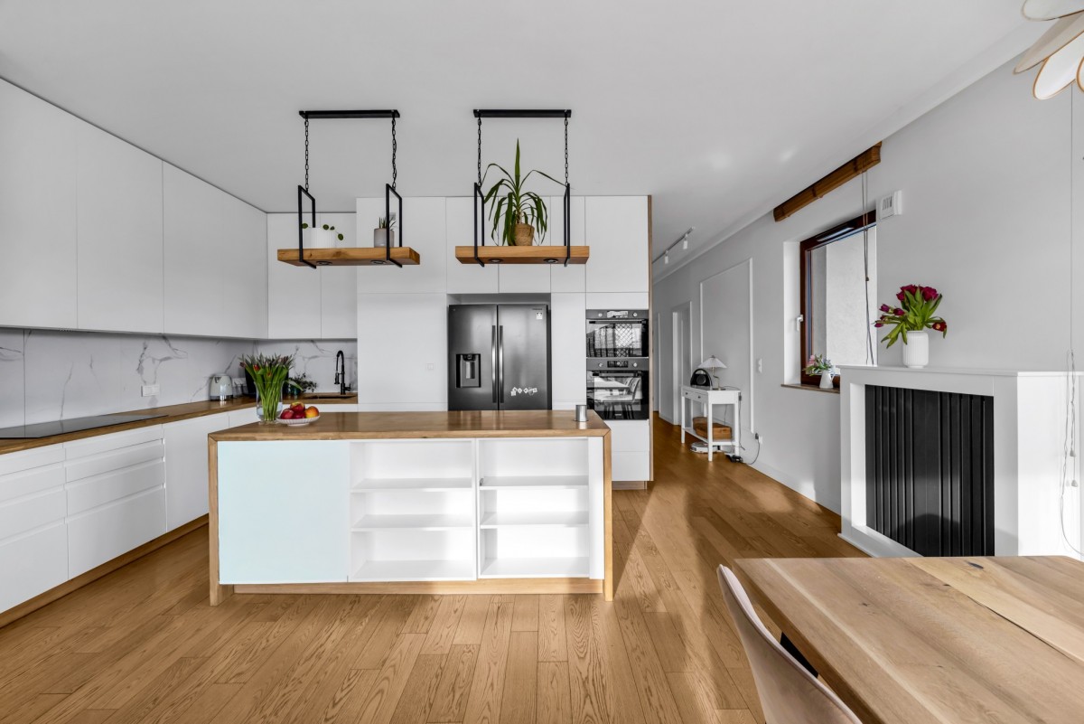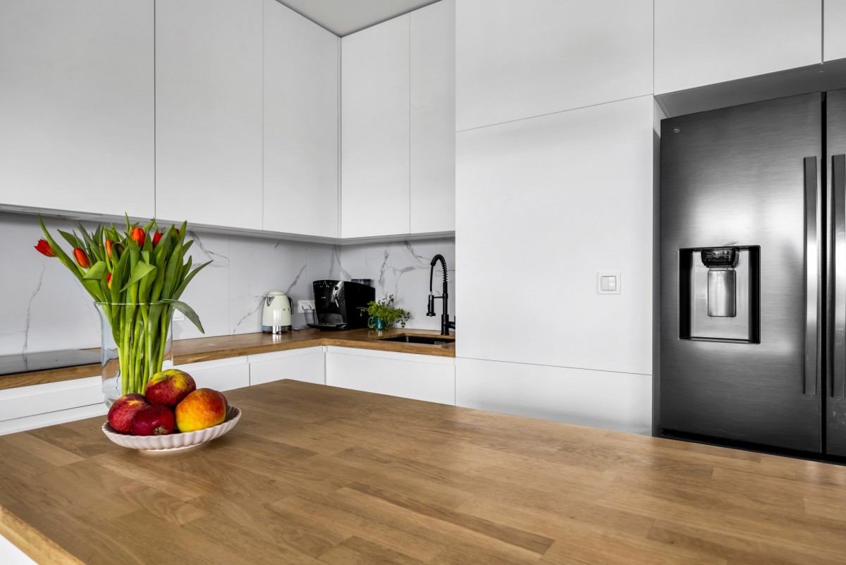 - drewniane meble, wysokiej klasy armatura, sprzęty AGD w zabudowie;