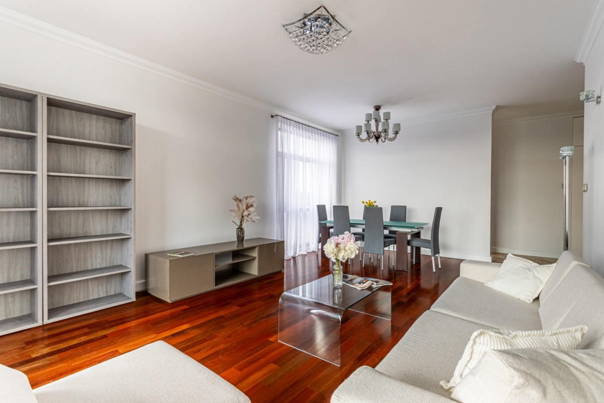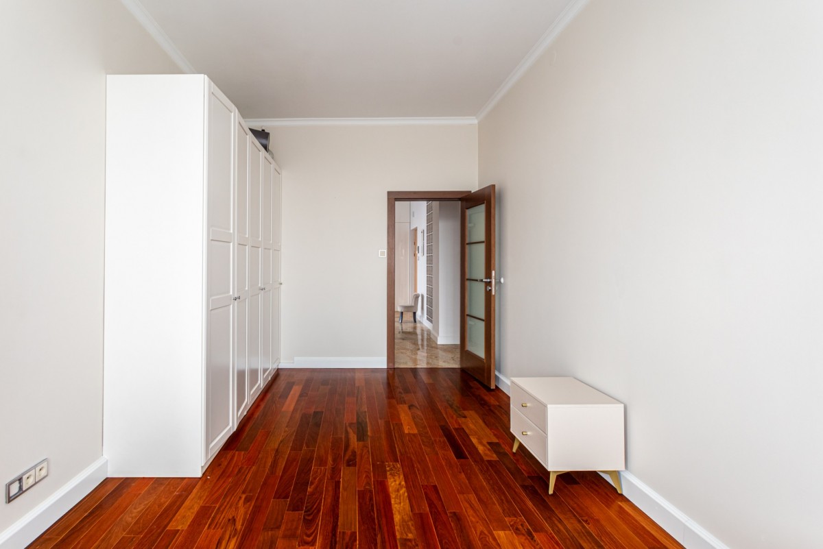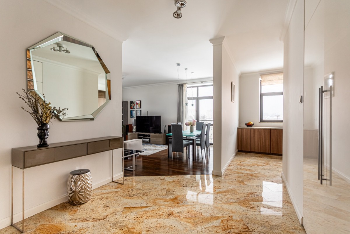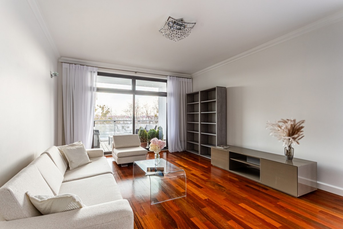 Wyjątkowy apartament o powierzchni 108,6 m², zlokalizowany na piątym, wysokim piętrze prestiżowego budynku przy ulicy Podchorążych na Mokotowie tuż obok Łazienek Królewskich.
