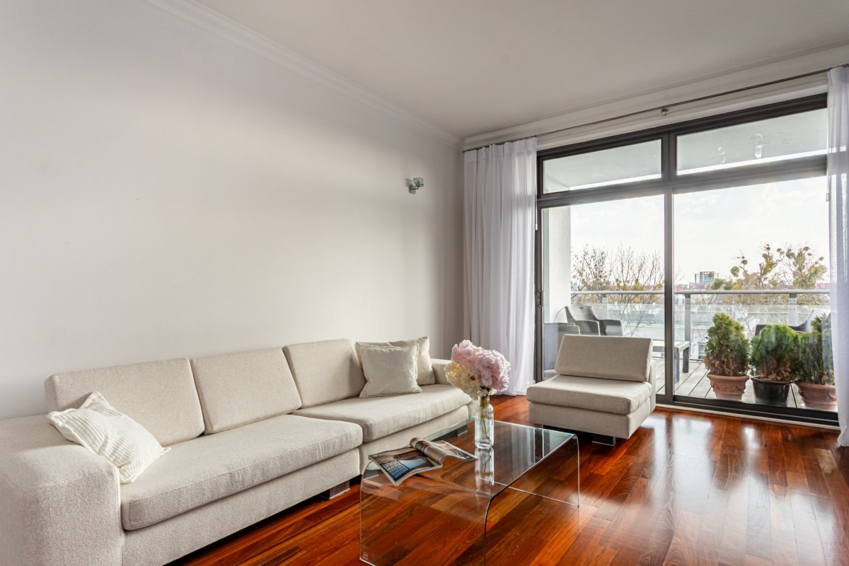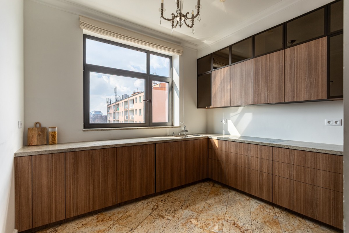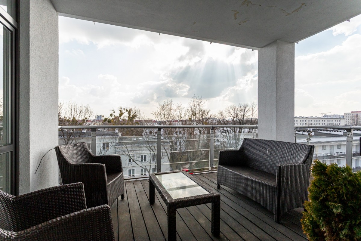 Przestronne mieszkanie charakteryzuje się ponadstandardową wysokością pomieszczeń blisko 3m, doskonałym rozkładem i ekspozycją południowo-zachodnią zapewniającą świetne doświetlenie. Z dużego salonu oraz tarasu roztacza się widok na zieloną okolicę bez sąsiadów „vis-à-vis”. Nowoczesna kuchnia wyposażona jest m.in. w winiarkę, a apartament oferuje komfort i prywatność na najwyższym poziomie.