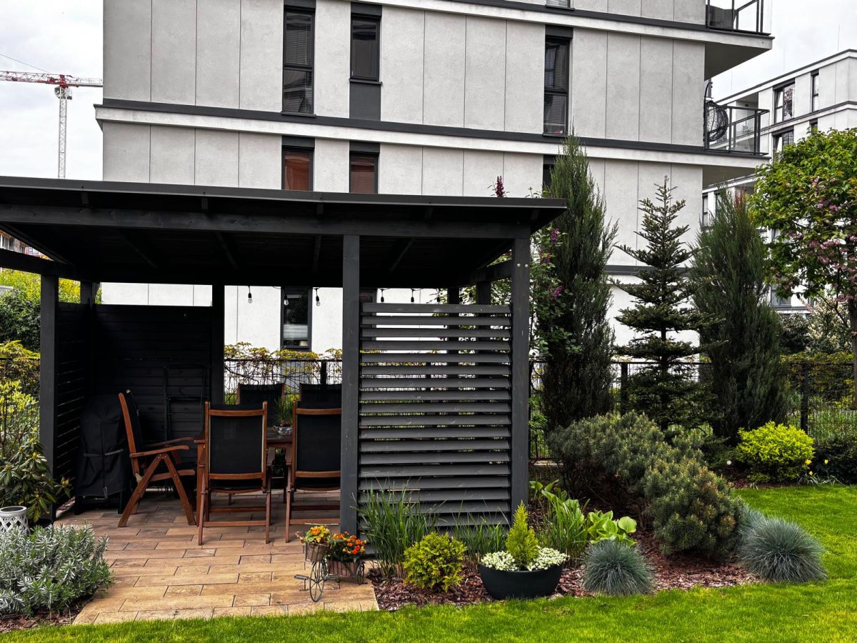 Niepowtarzalnym atutem nieruchomości jest prywatny ogród o powierzchni 220 m², zaprojektowany przez architekta krajobrazu. To idealne miejsce do relaksu - znajduje się tu elegancka altana grillowa oraz starannie dobrane rośliny, krzewy i drzewa, które tworzą kameralną, pełną prywatności przestrzeń wypoczynkową.