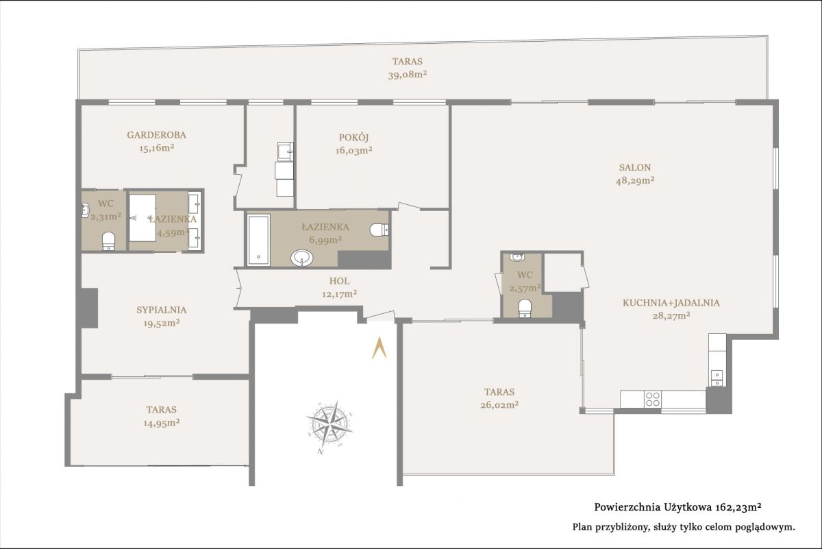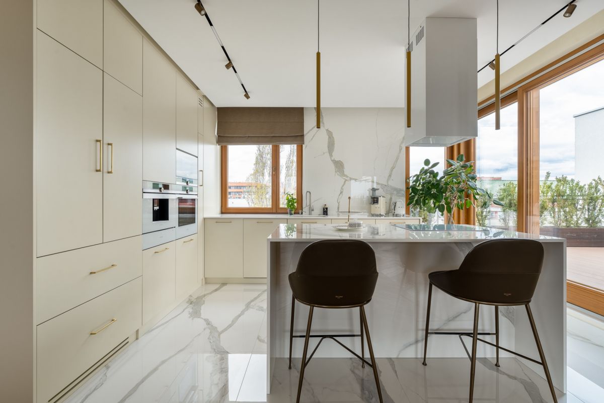 - oranżeria i dwa tarasy, jeden rozciągający się wzdłuż całego apartamentu;