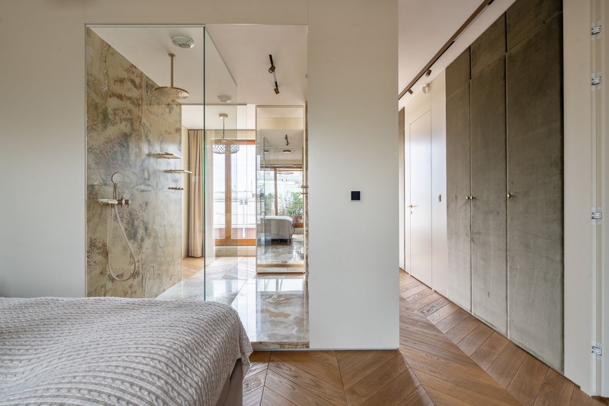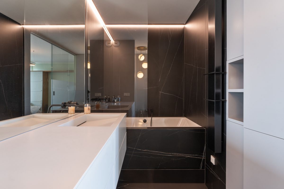 Elegant furniture and attention to detail of the finishes ensure comfort and convenience, while a consistent colour scheme and the possibility to control the intensity of lighting in this part of the flat, promote an atmosphere of tranquillity and relaxation.