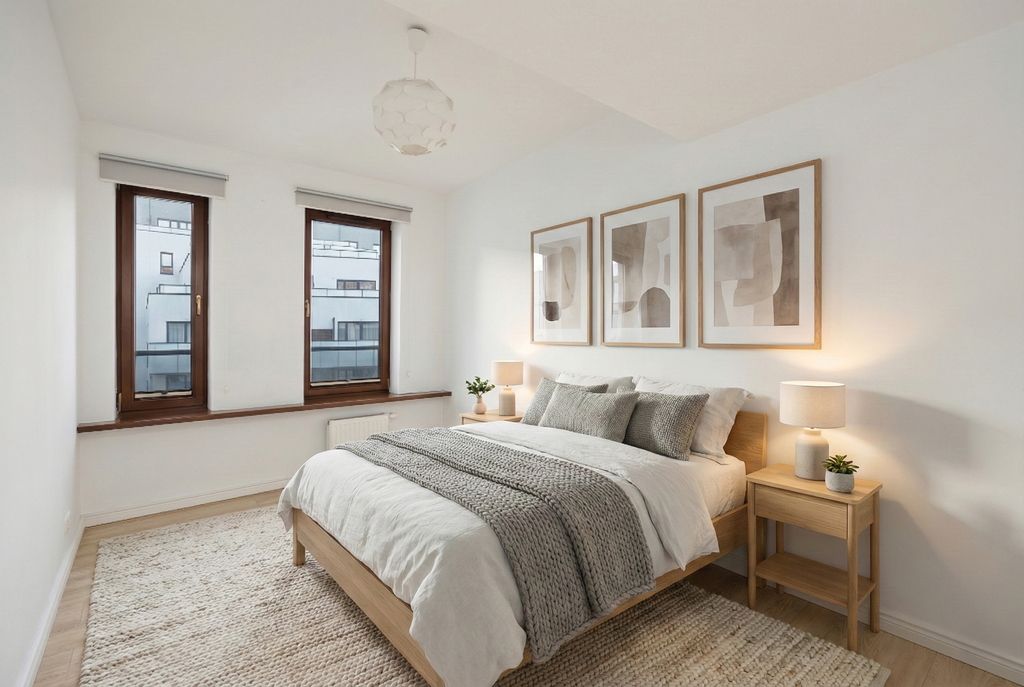Mieszkanie jest w bardzo dobrym stanie technicznym, świeżo odświeżone i odmalowane. Wnętrze wykończone jest w ponadczasowym standardzie, z panelami oraz gresem na podłogach. W łazience znajduje się prysznic. Nowoczesne drewniane okna skierowane są na zachód, dzięki czemu mieszkanie jest dobrze doświetlone i pozostaje ciche, ponieważ wychodzi na wewnętrzne patio.