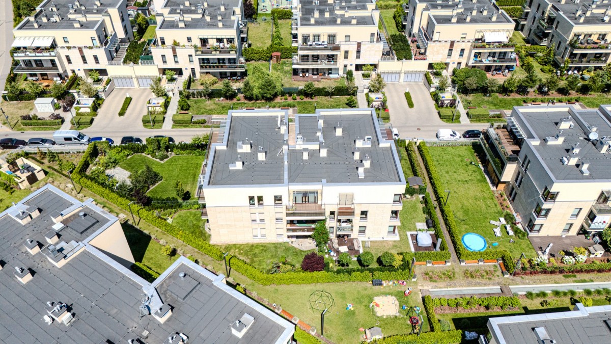 The apartment is located on the second floor of a low-rise apartment building in a gated community. The staircase is finished with granite and oak. Designed and finished to the highest standard, with attention to every detail and using the highest quality materials, it offers a sense of comfort and luxury, allowing for a wide range of interior design options, furniture, and equipment, with ample storage space. It is spacious and very bright (windows facing south, east, and west), and is located in an excellently connected part of Warsaw - 500 meters from the metro.