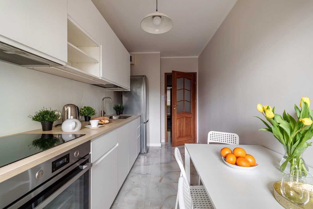 - oddzielna, jasna kuchnia z nową zabudową oraz sprzętem AGD,