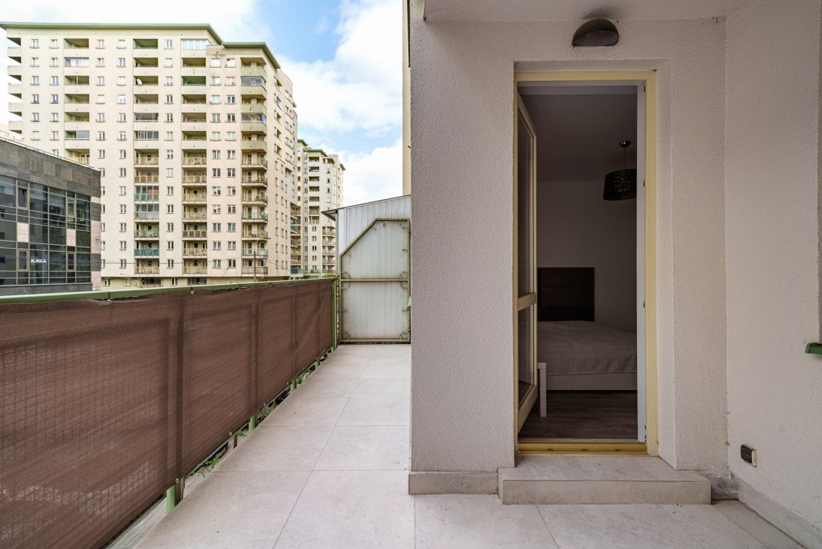- dwustronna ekspozycja - salon i kuchnia od strony południowej (widok na patio), sypialnie od strony północnej (widok na spokojną ulicę),