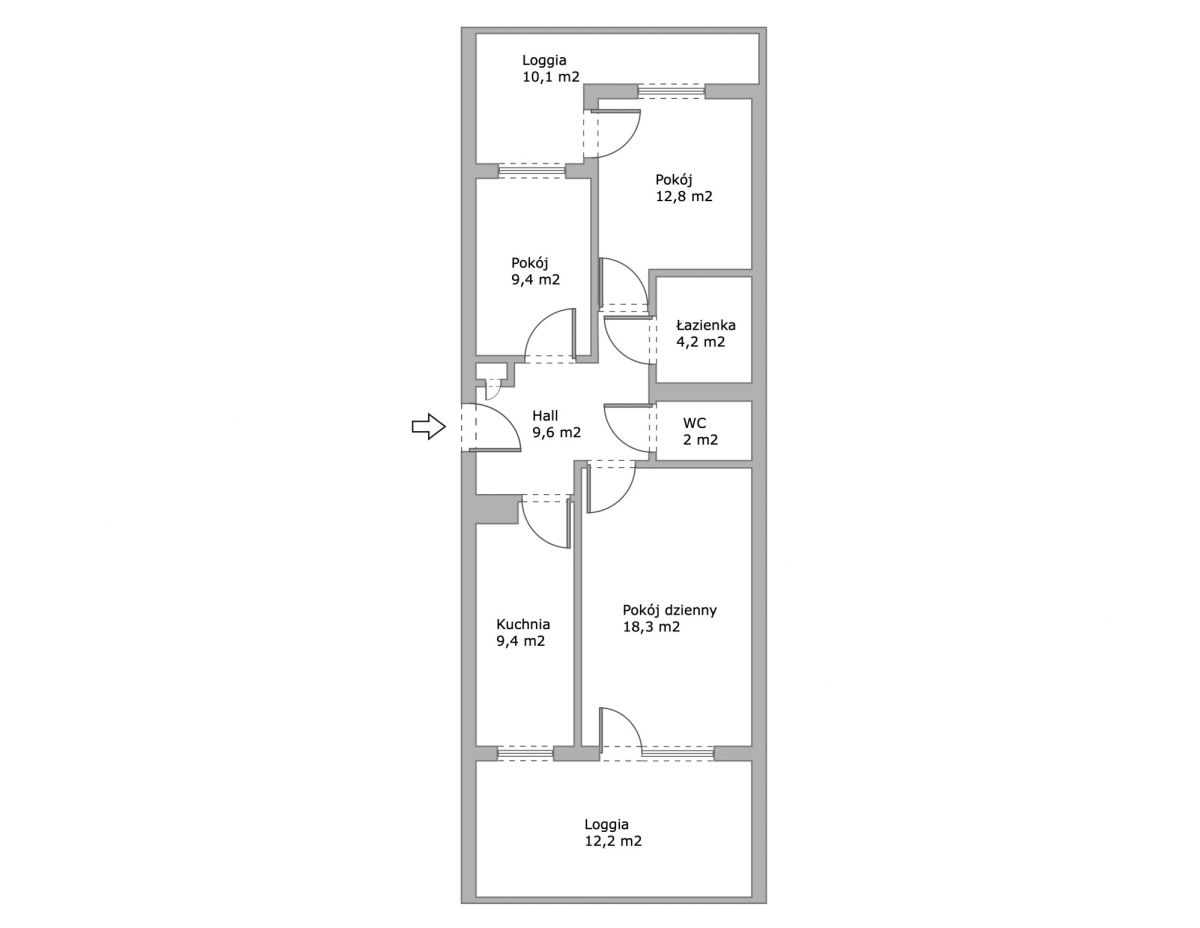 - loggia o powierzchni 12,2 m²,