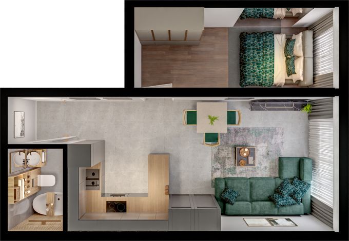 • półotwartą kuchnię (4,7 m²), którą można połączyć z salonem,