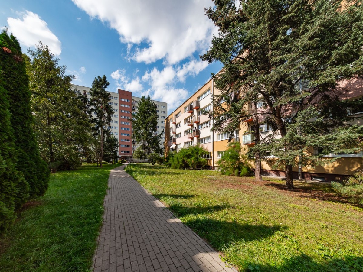 Widok z obydwu stronna podwórko pełne zieleni, dużo odległość do sąsiednich budynków zapewnia prywatność.