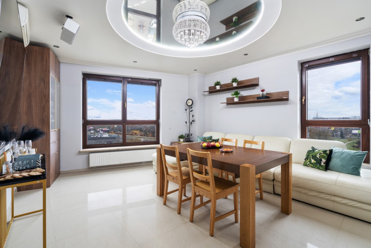 Wykończenie wnętrz zostało wykonane z dbałością o każdy detal - naturalny kamień, drewno, włoskie płytki, armatura premium. Mieszkanie narożne, doskonale doświetlone, z ekspozycją na dwie strony świata.