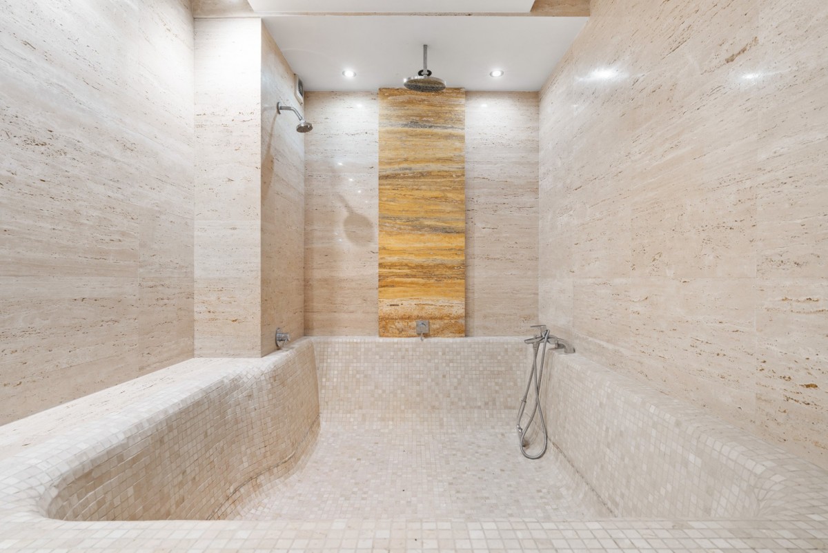 Luksusowa łazienka z unikalną, marmurową wanną dla sześciu osób - strefa relaksu w domowym spa.