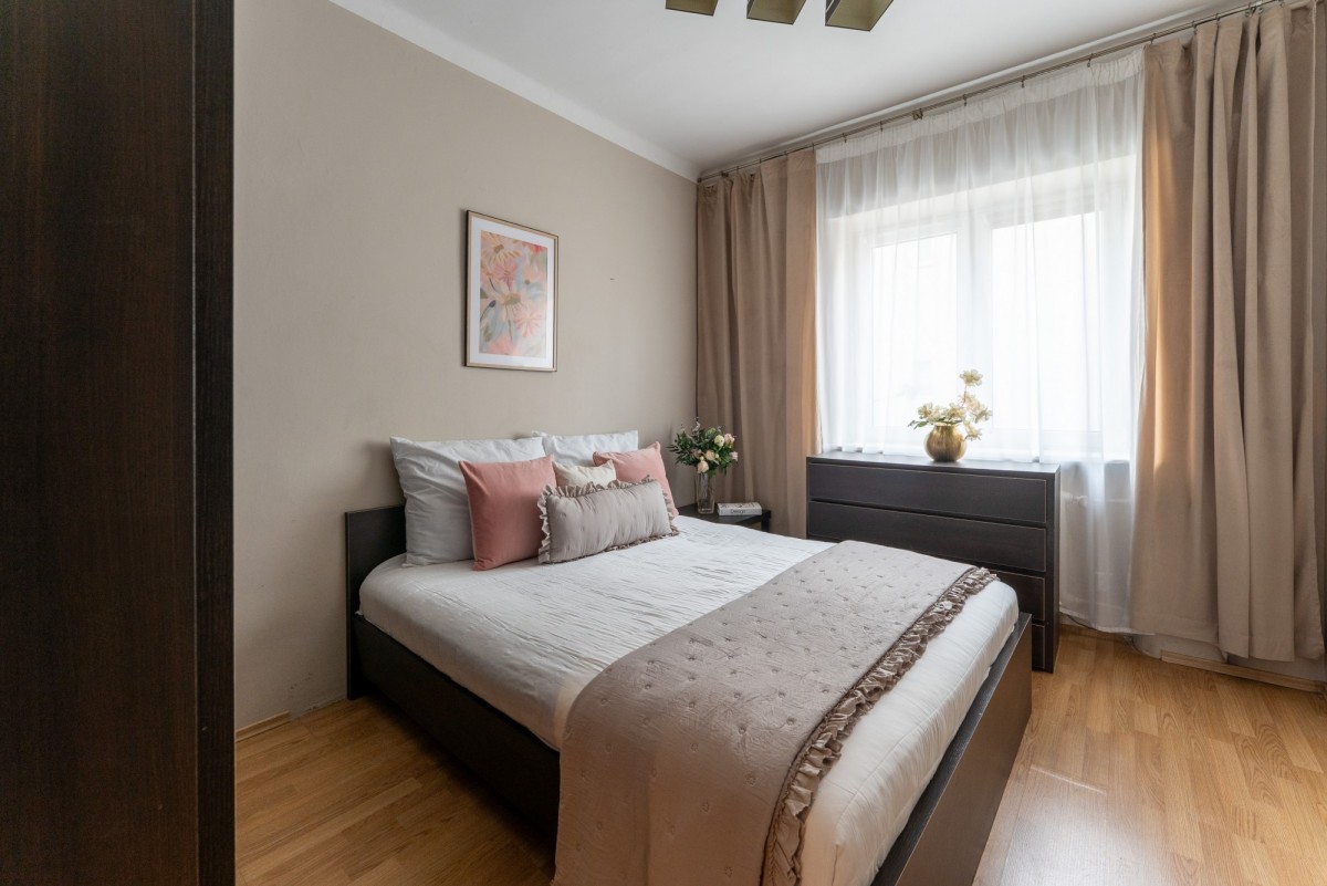 Bez sąsiadów nad głową i z dobrze doświetlonymi pokojami, mieszkanie, pomimo niepozornego metrażu, jest naprawdę komfortowe. Układ zaprojektowano tak, aby w pełni wykorzystać przestrzeń. Niewielka kuchnia, którą w razie potrzeby można łatwo otworzyć na salon i przerobić na aneks, łazienka z prysznicem, a przede wszystkim dwa ustawne, niezależne pokoje zapewniające prywatność. Dwustronna ekspozycja (wschód-zachód) gwarantuje naturalne światło przez cały dzień i dobrą cyrkulację powietrza. Do mieszkania przynależy także piwnica.