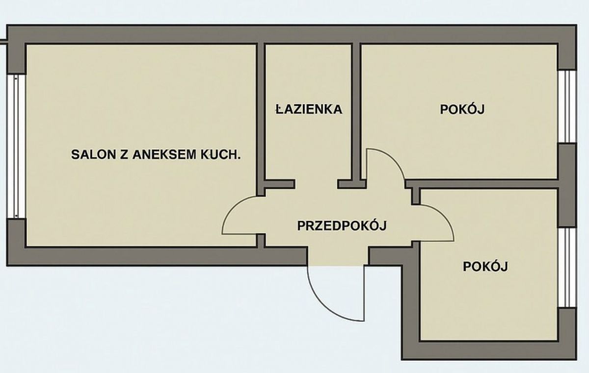 MIESZKANIE składa się z pokoju dziennego z aneksem kuchennym oraz wyjściem na niewielki balkon, z ekspozycją zachodnią. W dalszej części lokalu znajdują się dwa oddzielne pokoje z ekspozycją wschodnią od cichej strony. Do dyspozycji jest również łazienka wyposażona w prysznic oraz miejsce na pralkę, a także przedpokój.