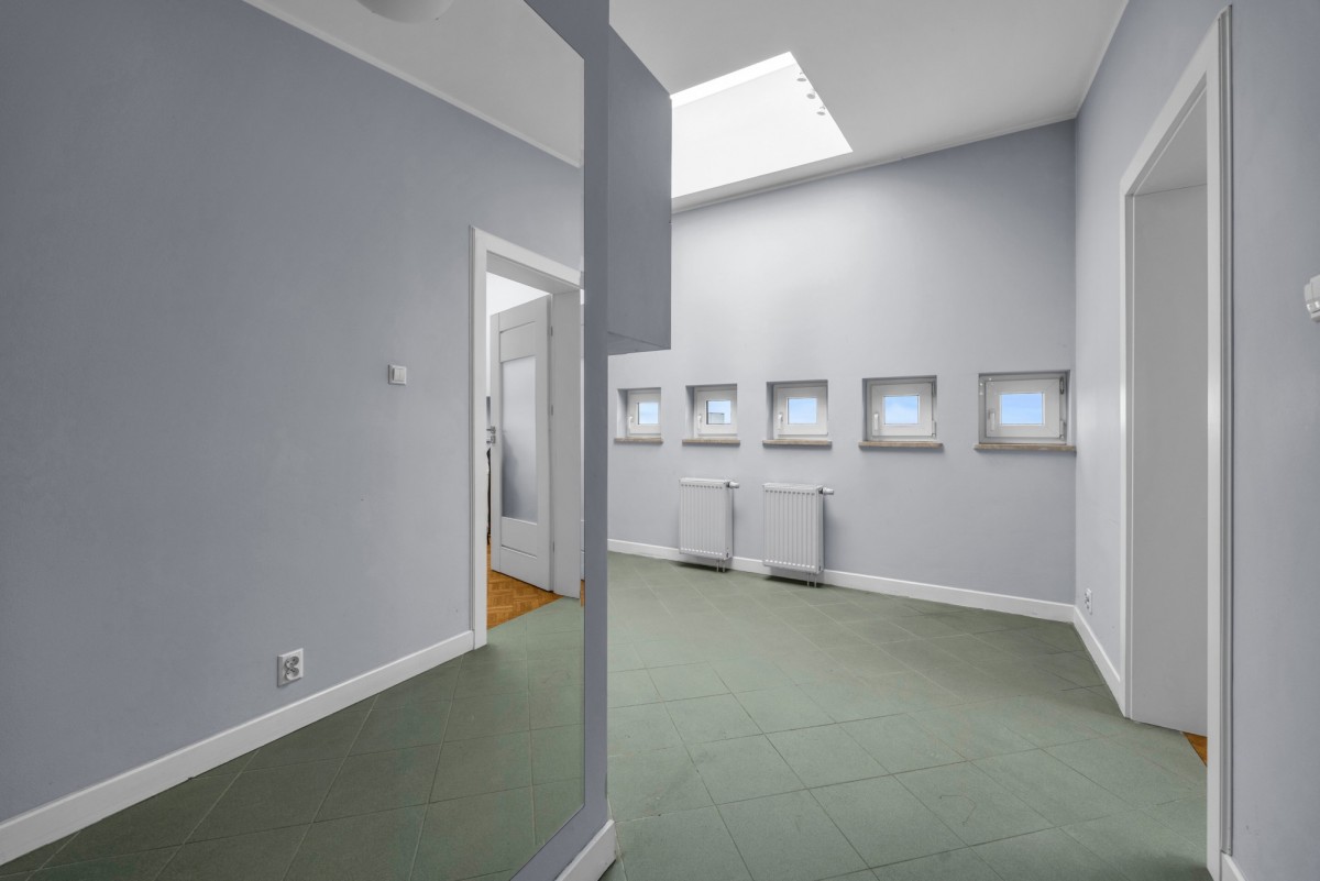 Wnętrze jest bardzo jasne dzięki dużym oknom, elektrycznym świetlikom i wysokiemu położeniu w budynku. Wysokość pomieszczeń 2.8 m, w najniższym miejscu wysokość wynosi 2.2 m. Ekspozycja zapewnia dobre doświetlenie przez większą część dnia.