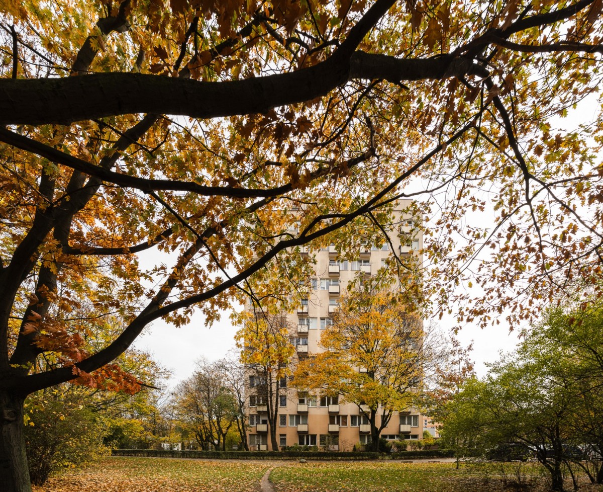 Dwunastopiętrowy blok z lat 60 tych.
