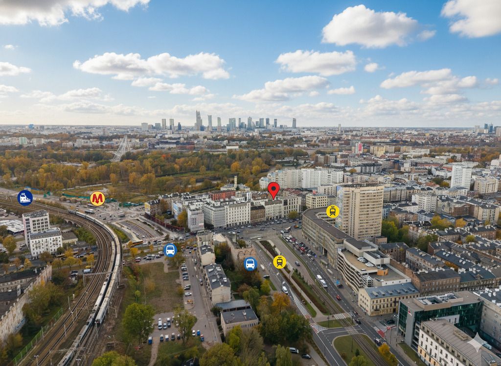 Zaledwie kilka minut spaceru dzieli budynek od stacji metra Stadion Narodowy, przystanków tramwajowych i autobusowych, co zapewnia doskonałą komunikację z pozostałymi częściami Warszawy.