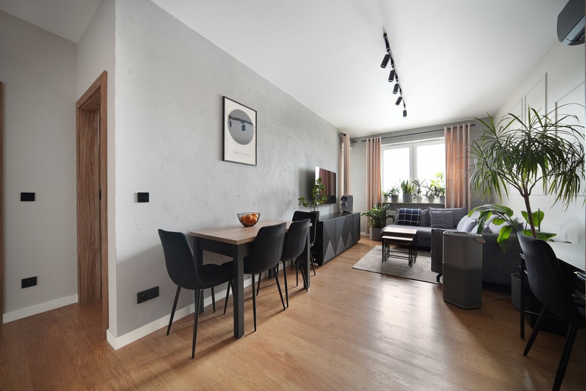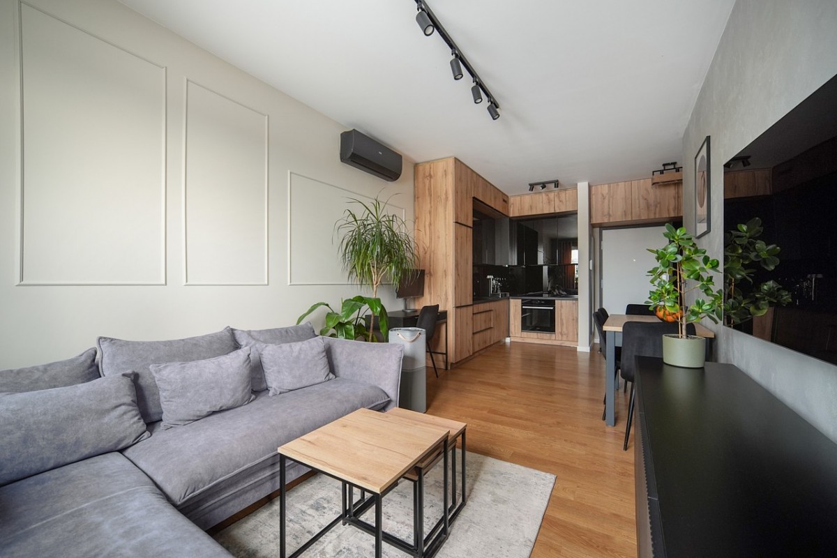 Mieszkanie wykończone w latach 2022-2023 w wysokim standardzie, z użyciem materiałów premium. W pełni umeblowane, wyposażone w sprzęt AGD, klimatyzację i meble na wymiar - gotowe do wprowadzenia bez nakładów.