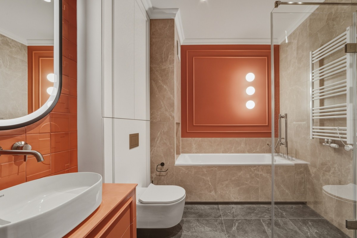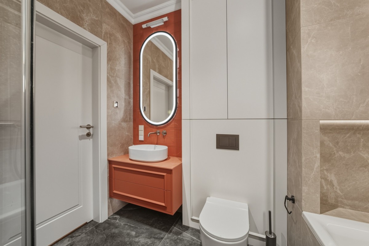 - łazienka wykończona w wysokim standardzie, z elegancką ceramiką i nowoczesną armaturą