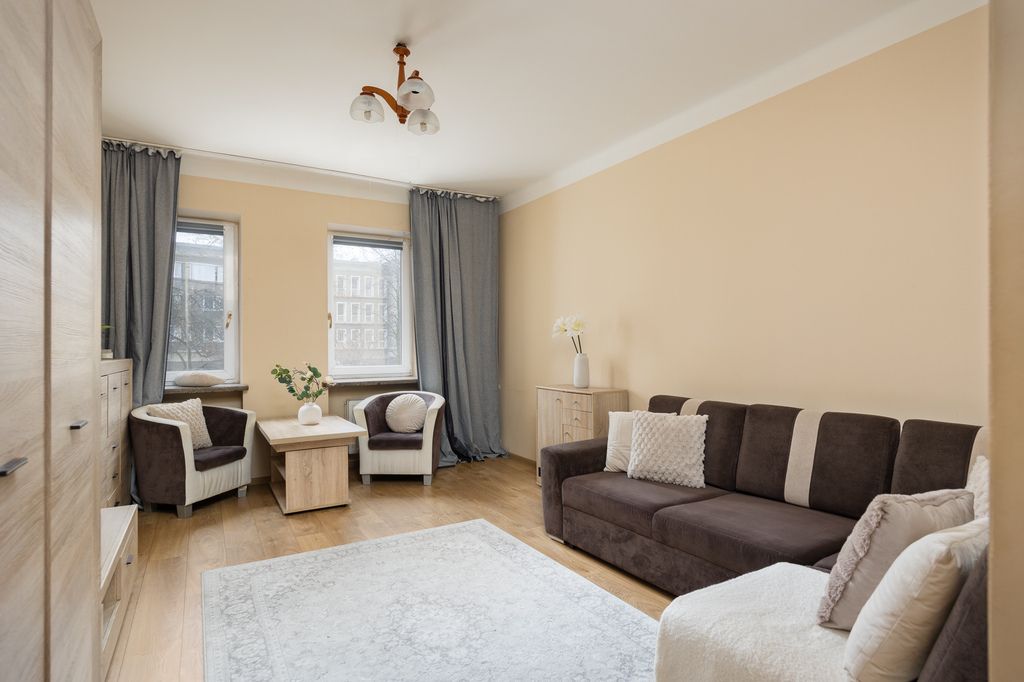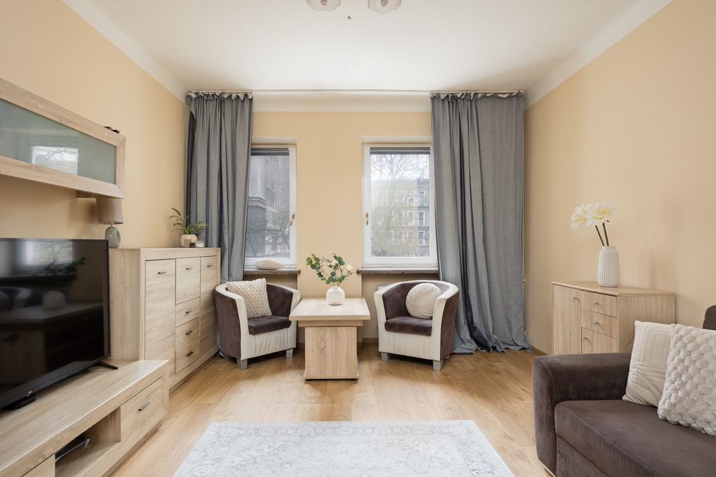 Dwupokojowe mieszkanie na warszawskiej Pradze-Północ położone na pierwszym piętrze trzypiętrowego budynku z 1956 roku przy ul. Szanajców 8.