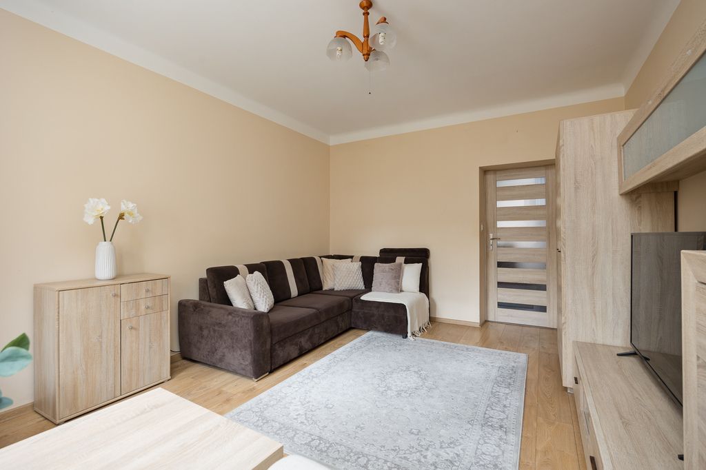Okna wymienione na PCV marki Oknoplast. Drzwi wewnętrzne wymienione 10 lat temu. W pokoju dziennym wymieniono elektrykę oraz położono gładzie. Do mieszkania przynależy duża piwnica o powierzchni ok. 7 m2. W budynku znajdują się jedynie trzy mieszkania na piętrze.