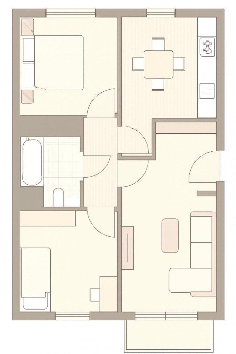 - Ekspozycja na patio - gwarantuje ciszę i spokój przez cały dzień - mieszkanie oddalone jest od ulicznego zgiełku, co sprzyja relaksowi.