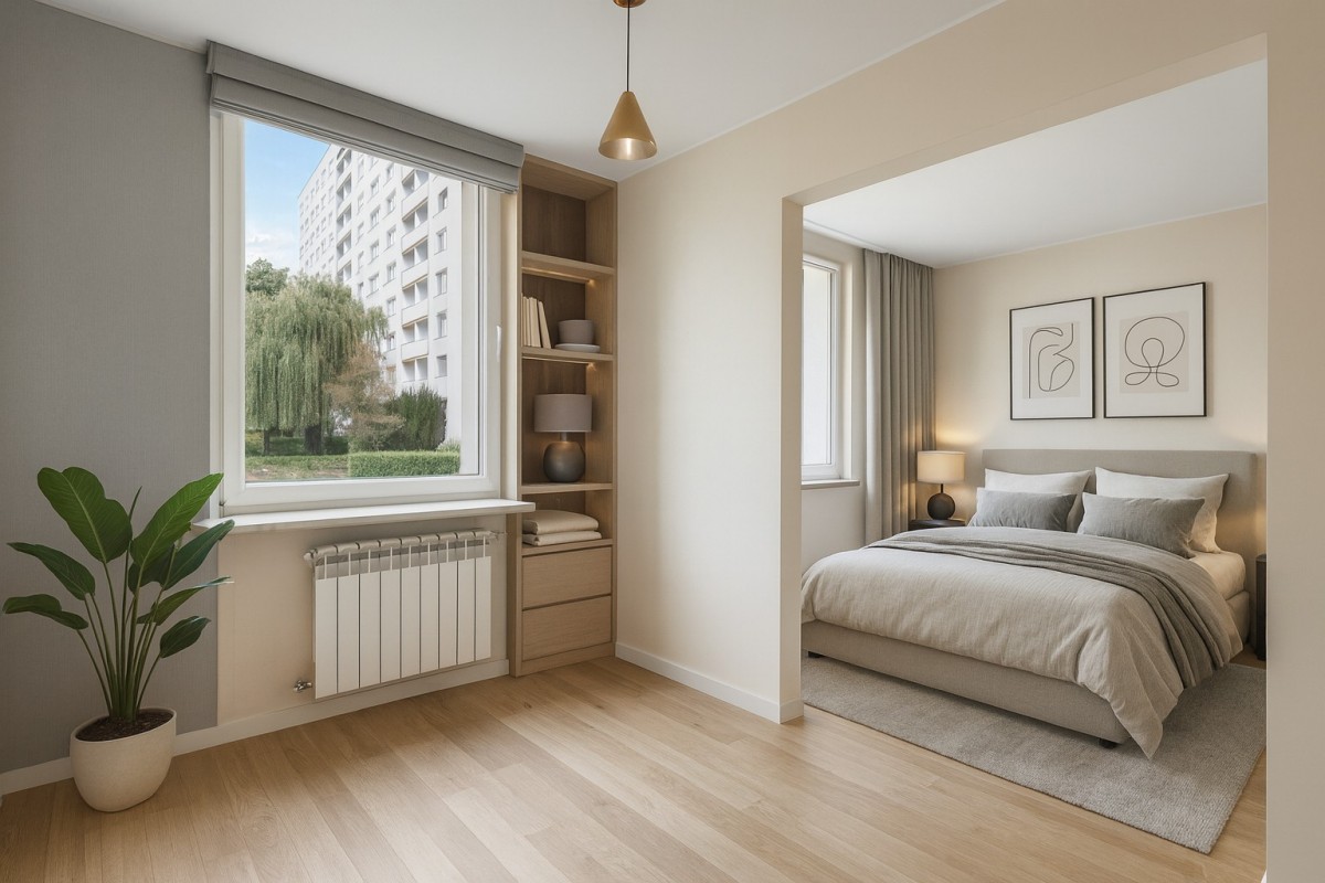 - Sypialnia o powierzchni 18 mkw - dwoma oknami zapewnia doskonałe doświetlenie i możliwość elastycznej aranżacji wnętrza.