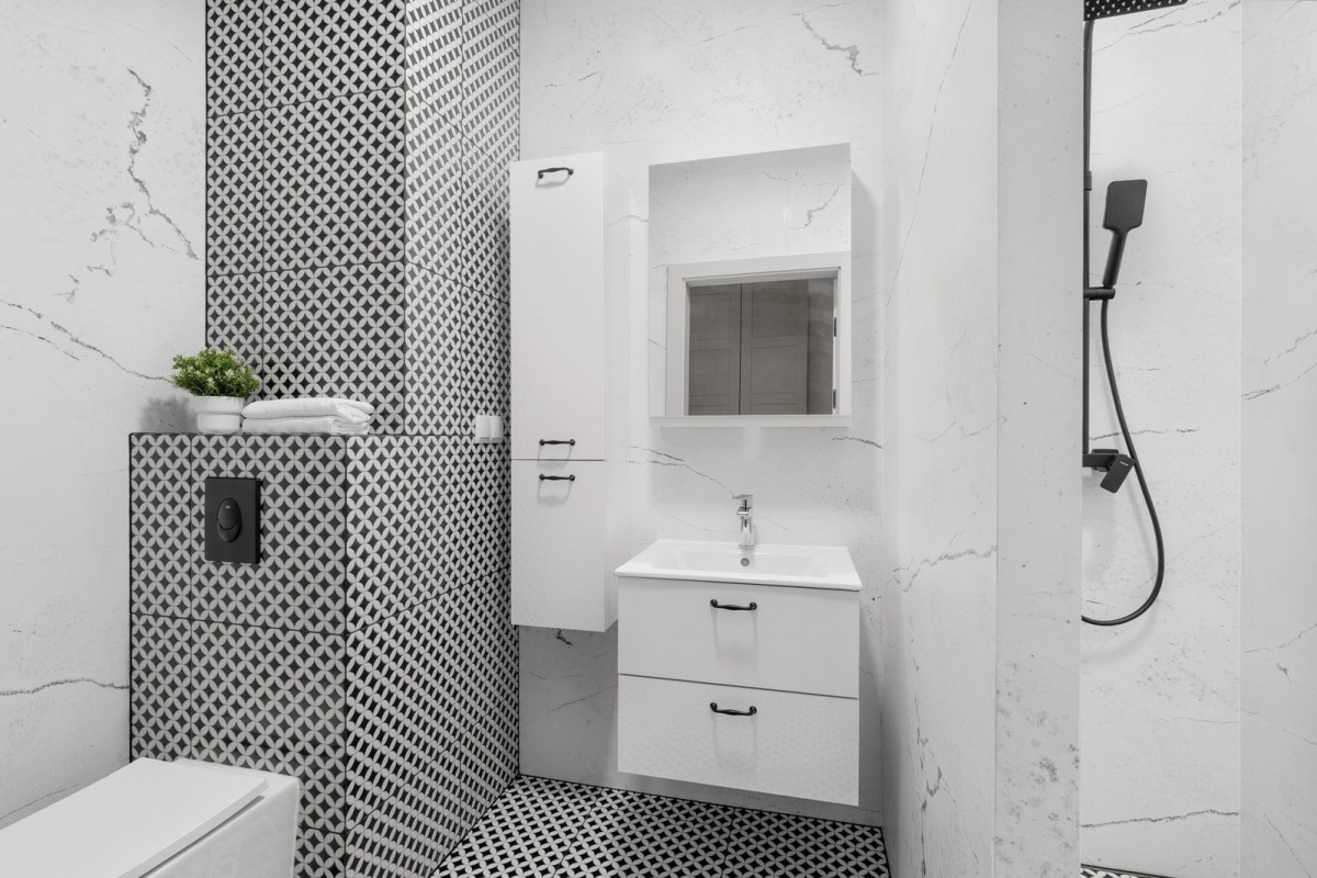 3) Łazienka - eleganckie, nowoczesne oświetlenie, nowa armatura i ponadczasowy styl.