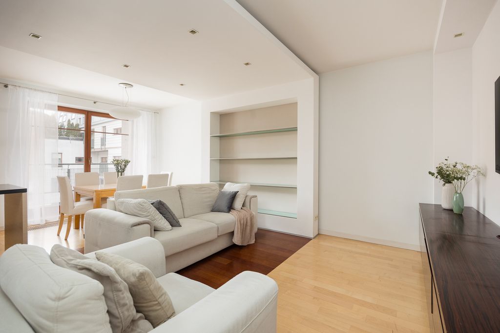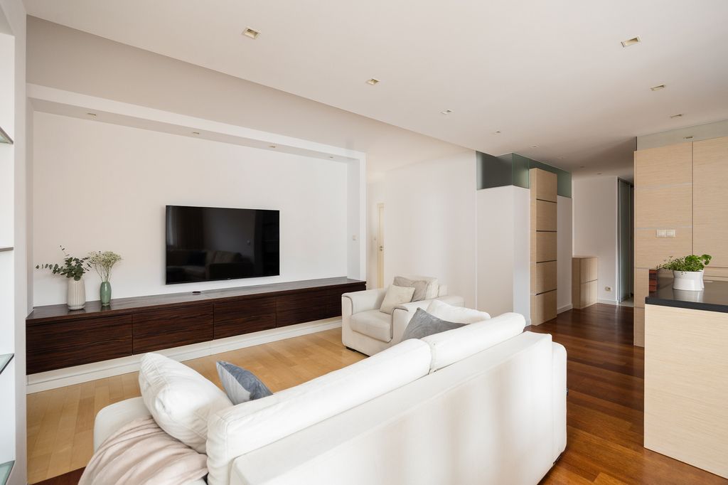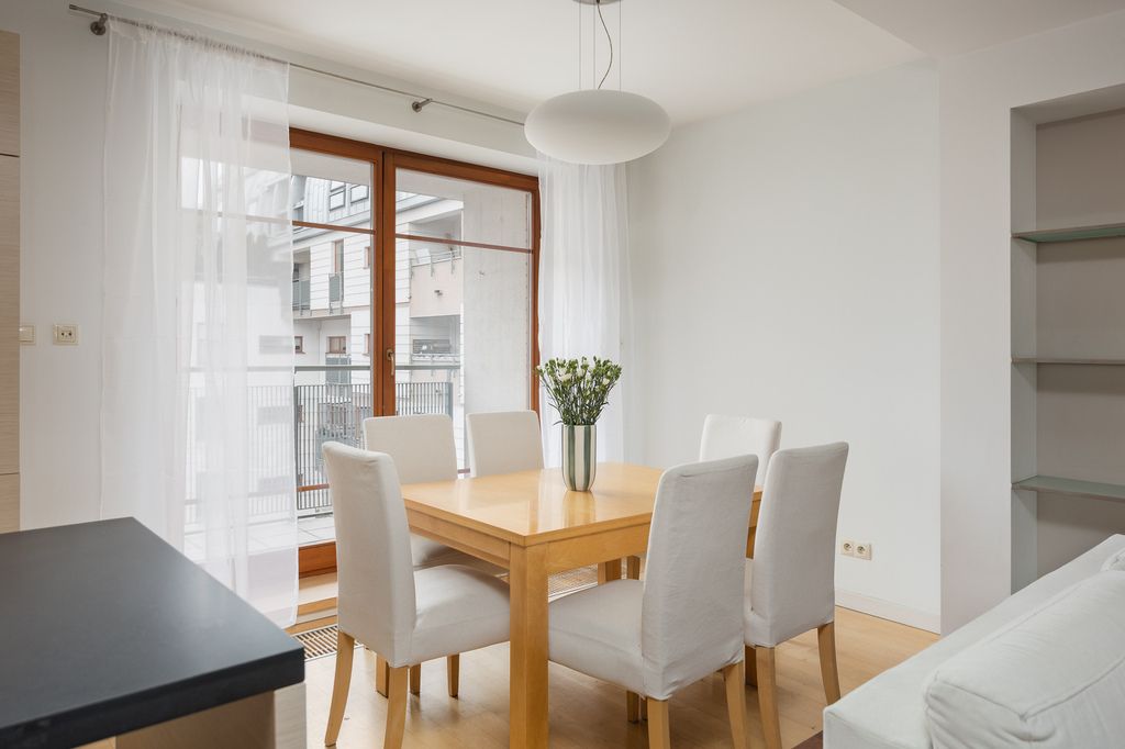 Apartament wyróżnia się przemyślanym układem pomieszczeń i wysokim standardem wykończenia.