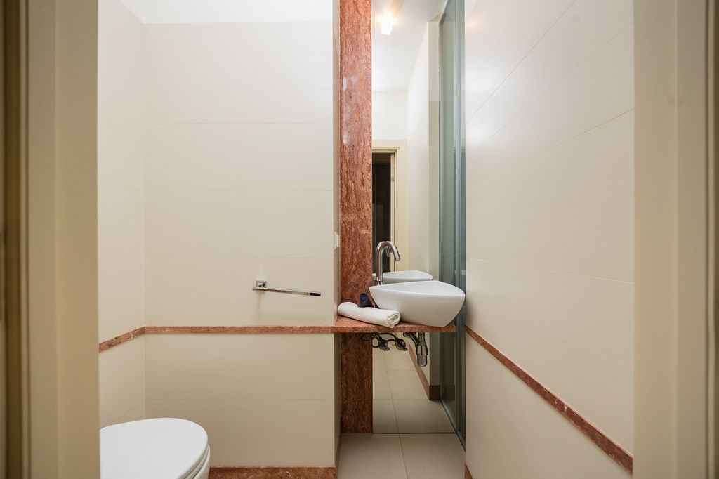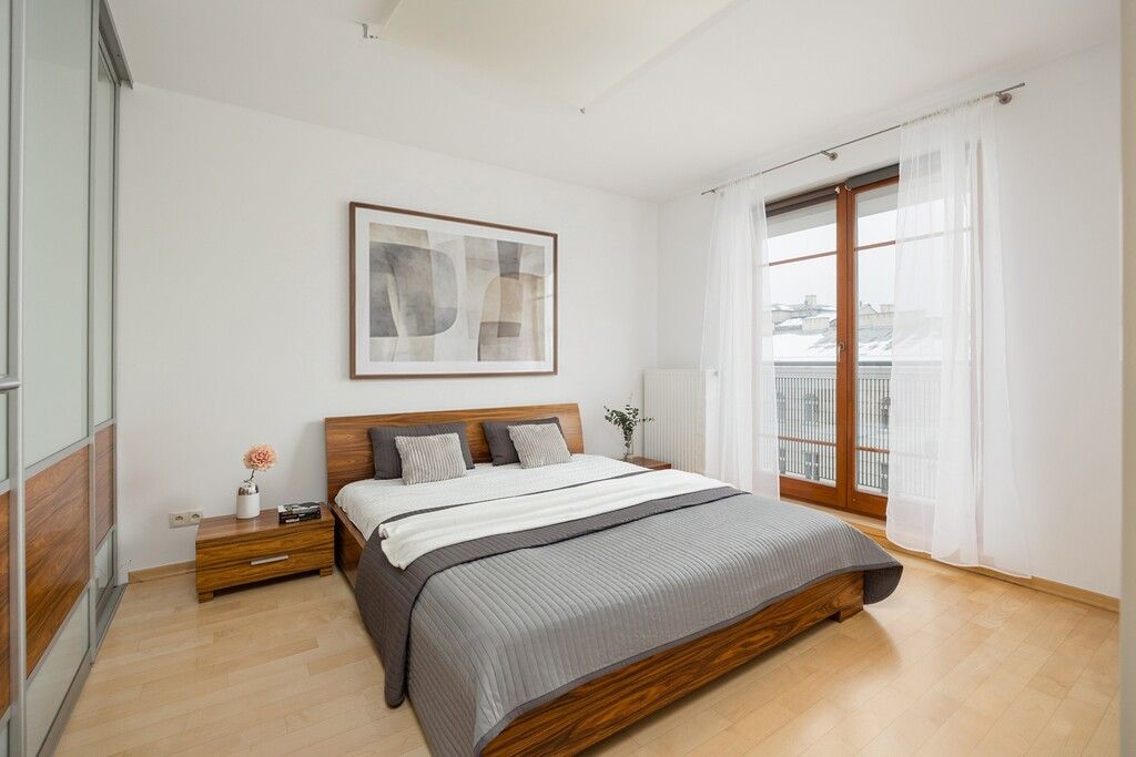- drugi niewielki balkon dostępny w części sypialnianej (łączy obie sypialnie), z którego rozpościera się piękny widok na odrestaurowane, zabytkowe kamienice i Teatr Baj (szczegóły widoczne na filmie)