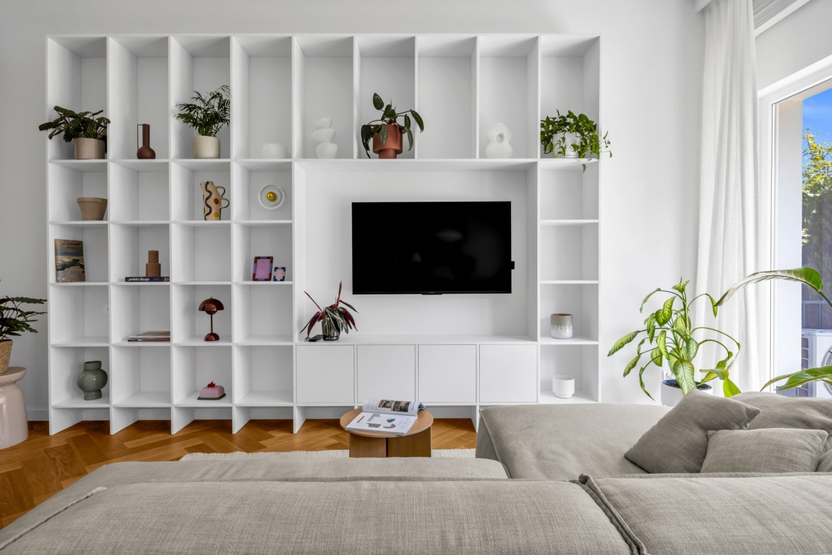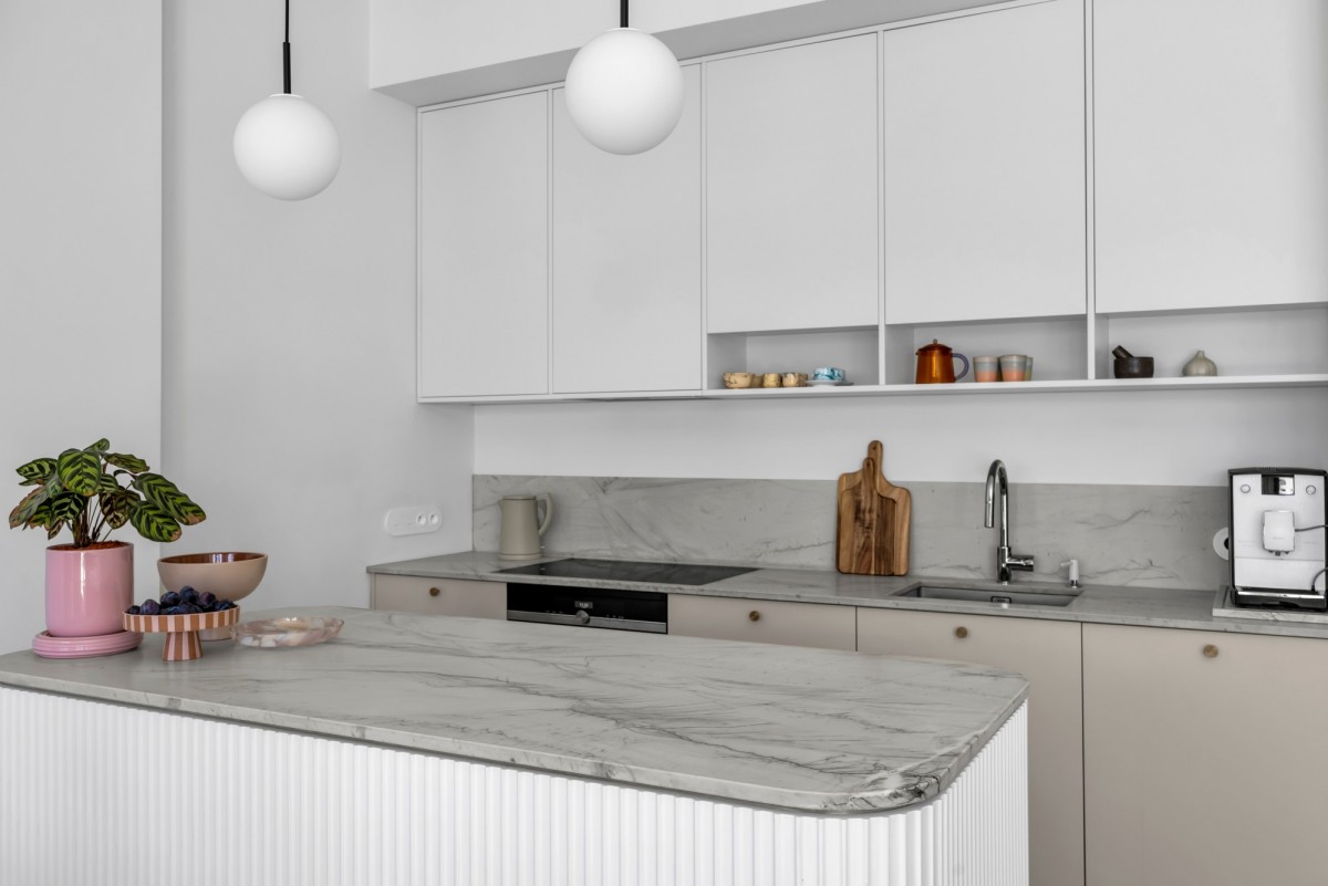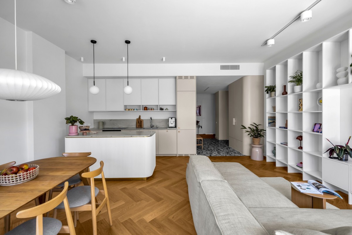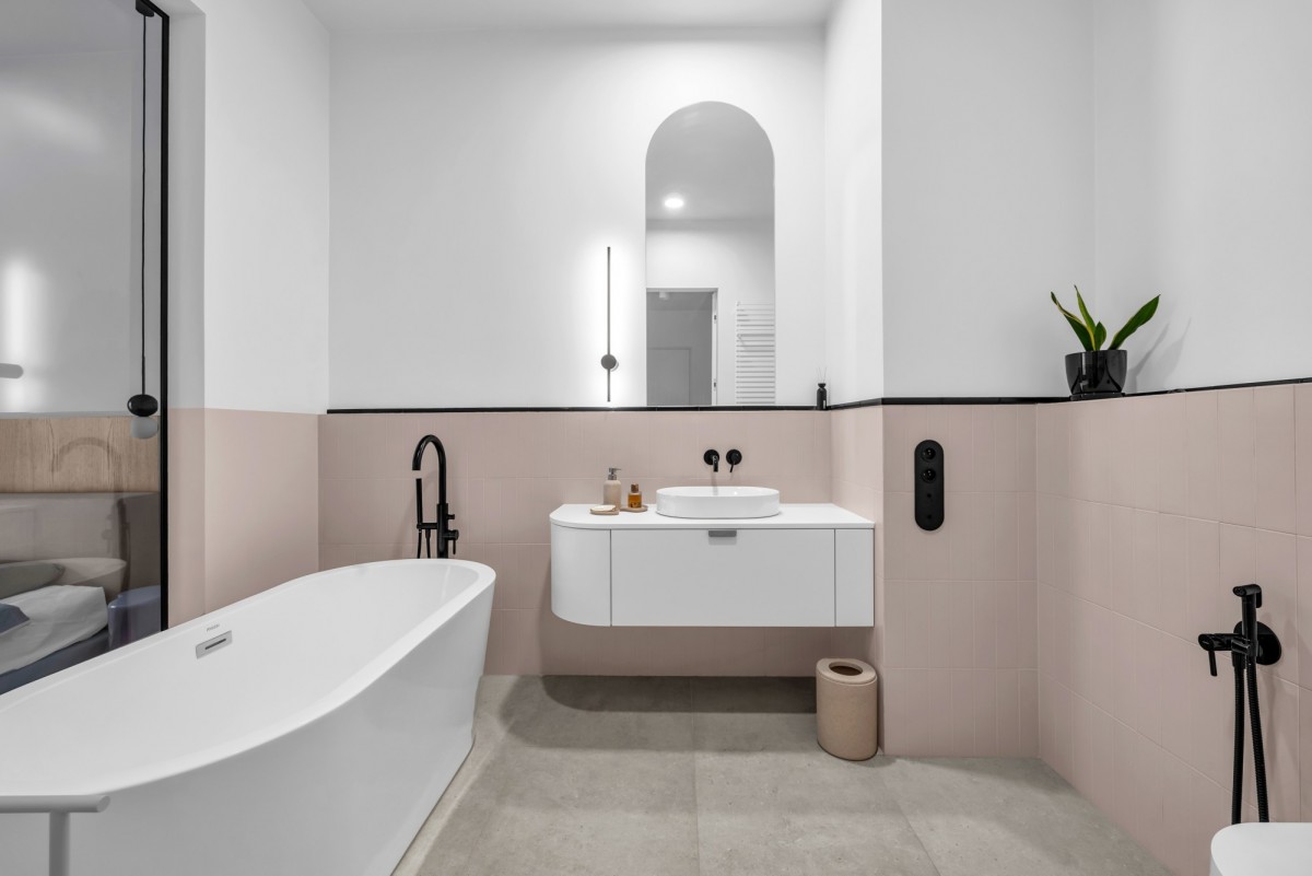 - Designerskie rozwiązania- zaoblenie ścian i zabudowy inspirowane modernistycznym stylem w nowoczesnym wydaniu,