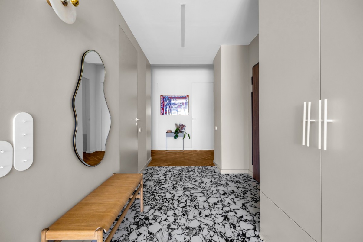 Na sprzedaż dwustronne apartament, klimatyzowany, wykończony w wysokim standardzie, 4 pokoje o powierzchni 120,96 m2 o unikalnej wysokości 3m z dwoma ogródkami (łącznie 93 m2) z miejscem parkingowym oraz komórką lokatorską na Pradze Południe.