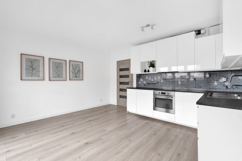 - Kuchnia w wyposażona w zmywarkę, piekarnik, płytę i okap – brakuje tylko lodówki