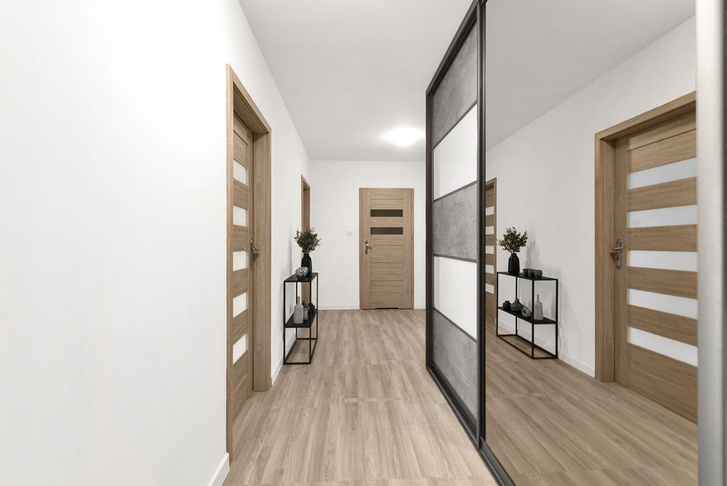 Salon z aneksem kuchennym jest bardzo jasny i tworzy otwartą, wygodną przestrzeń do życia – idealną do wspólnego gotowania, odpoczynku czy spotkań z bliskimi. Przez cały dzień wpada tu naturalne światło, a latem dodatkowy komfort zapewnia klimatyzacja. Z salonu wychodzi się na przestronny taras. Trzy oddzielne, ustawne pokoje mają klasyczne proporcje i mogą pełnić funkcję sypialni, pokoju dziecięcego lub gabinetu. W holu spokojnie zmieścisz dużą szafę albo praktyczną zabudowę do przechowywania. Całość została rozplanowana tak, by mieszkało się wygodnie i funkcjonalnie. Remont przeprowadzono około 5 lat temu – z wyjątkiem przedpokoju, który wymaga odświeżenia. To jednak świetna okazja, by zaaranżować go zgodnie z własnym stylem i potrzebami.
