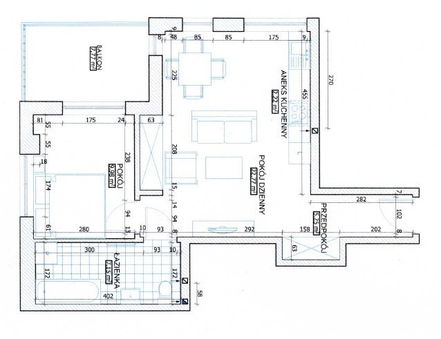 • przestronny salon z aneksem kuchennym i wyjściem na dużą loggię