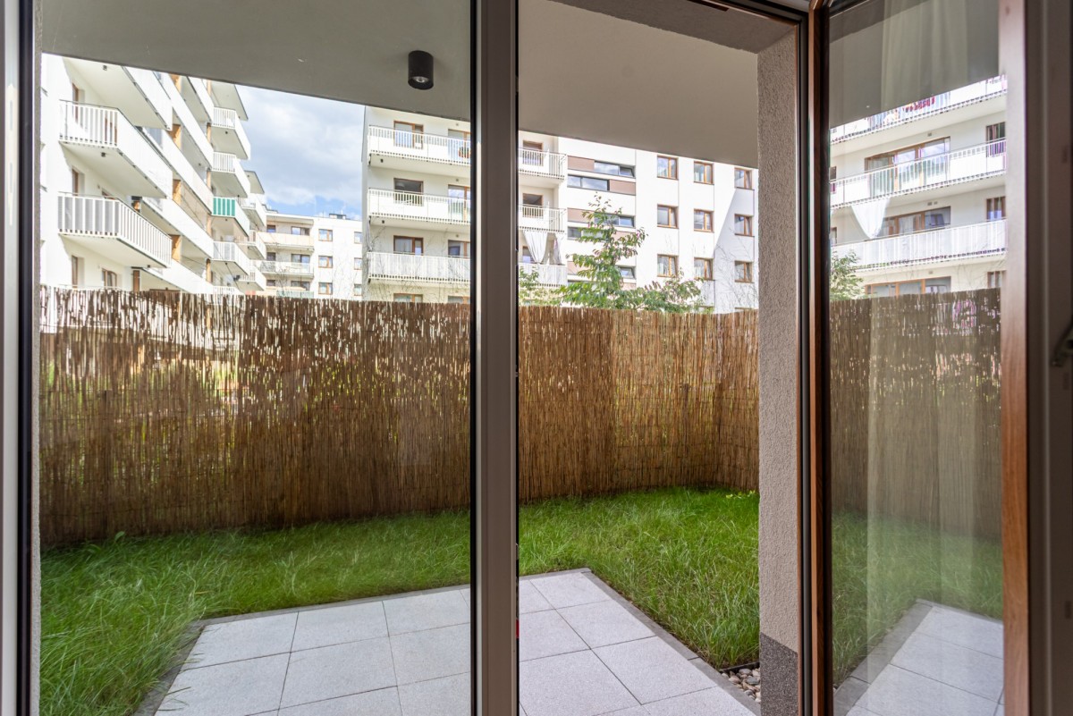taras z ogródkiem o łącznej powierzchni powyżej 12 m2.