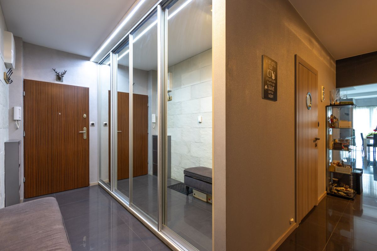 Przestronne, pojemne szafy z drzwiami przesuwnymi w sypialni i