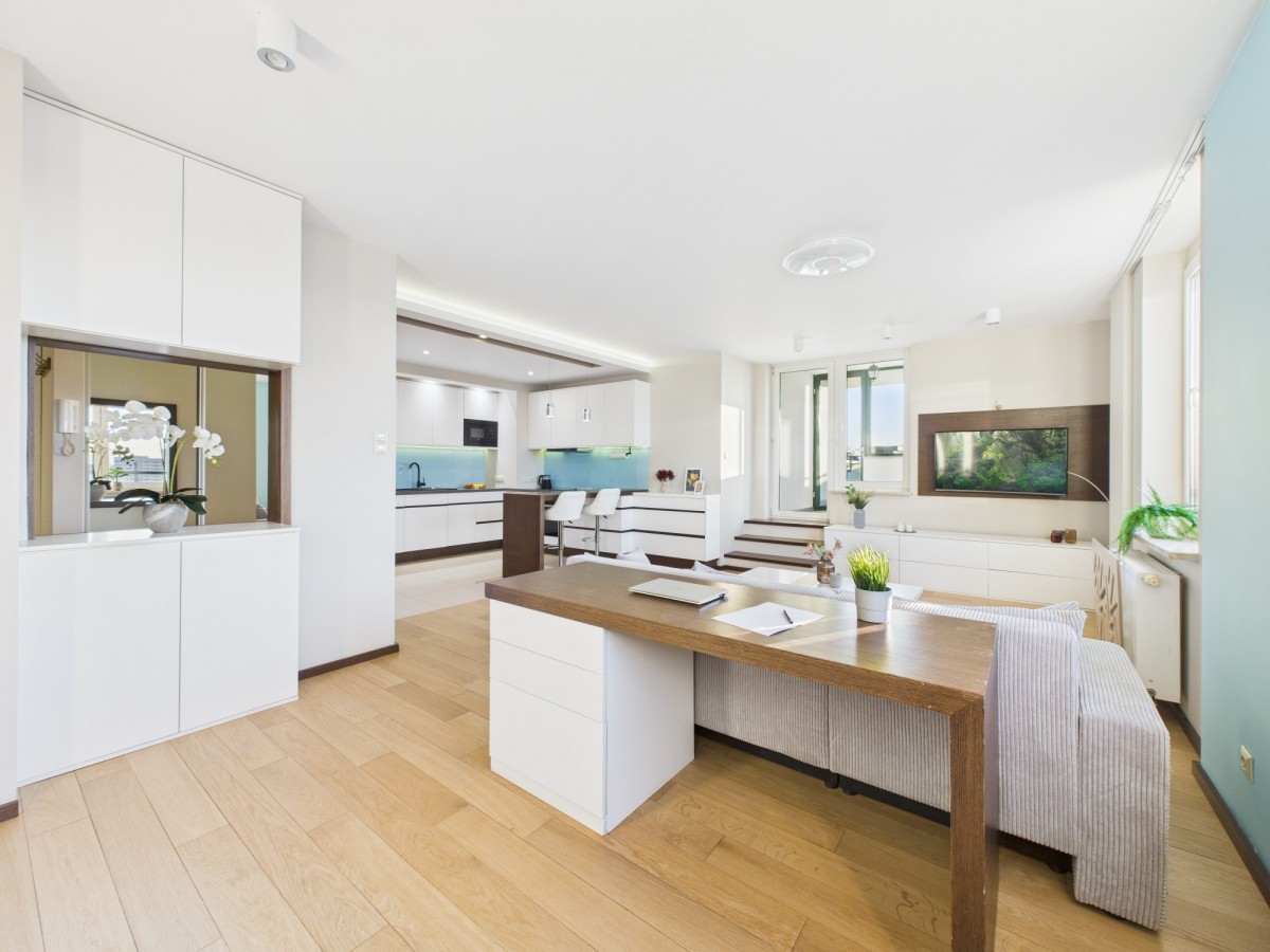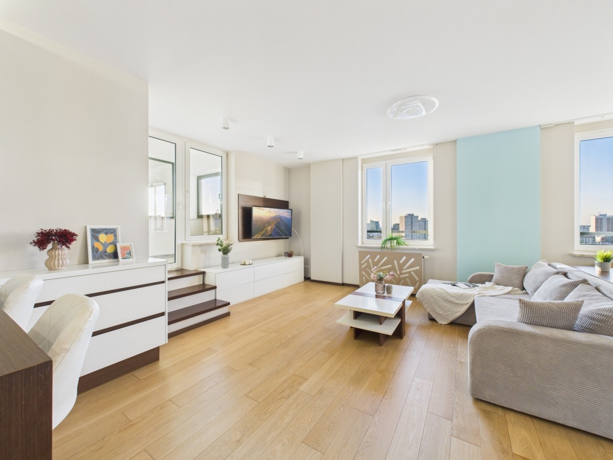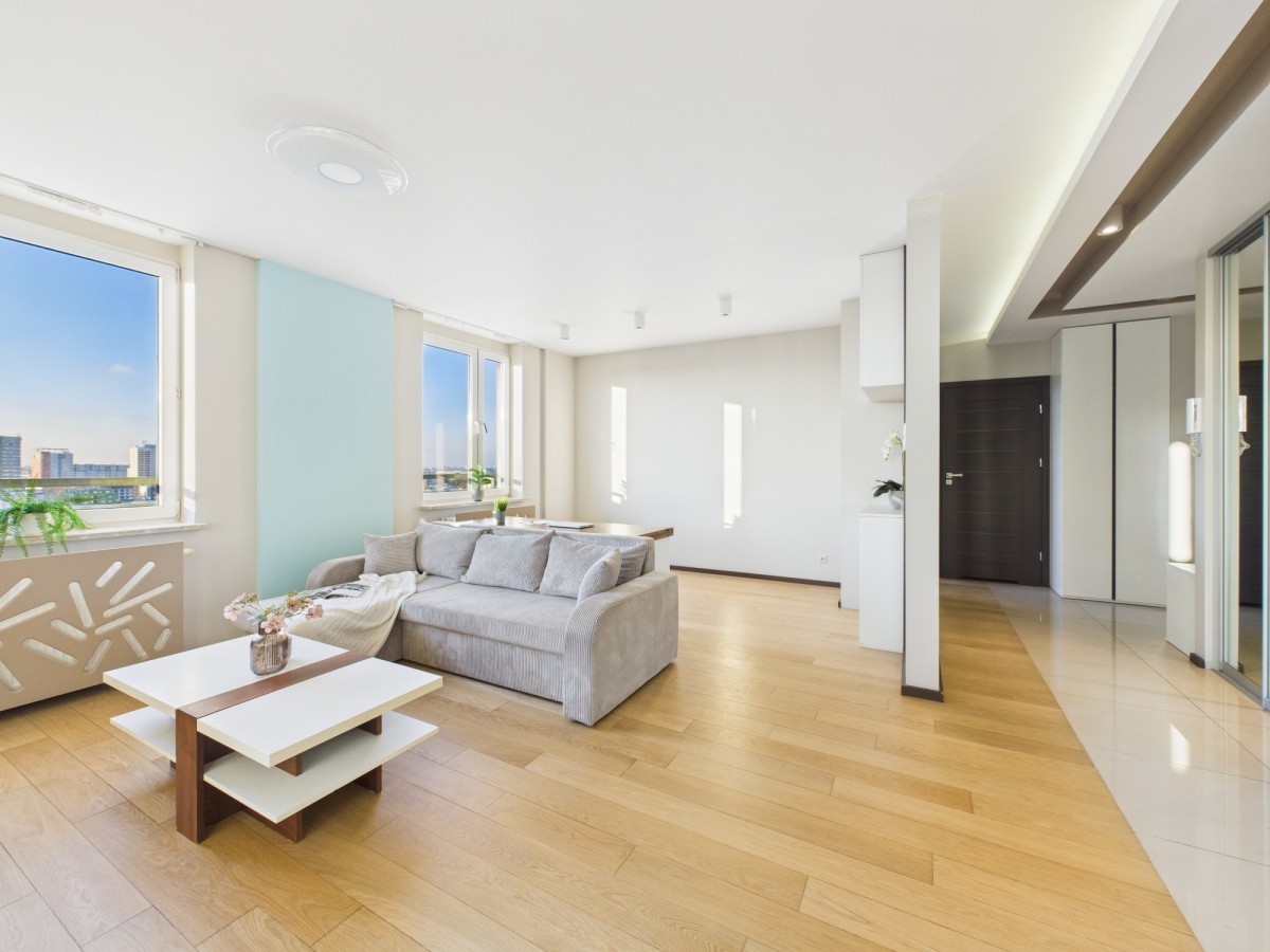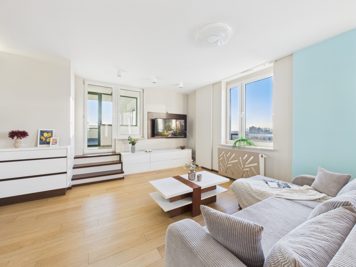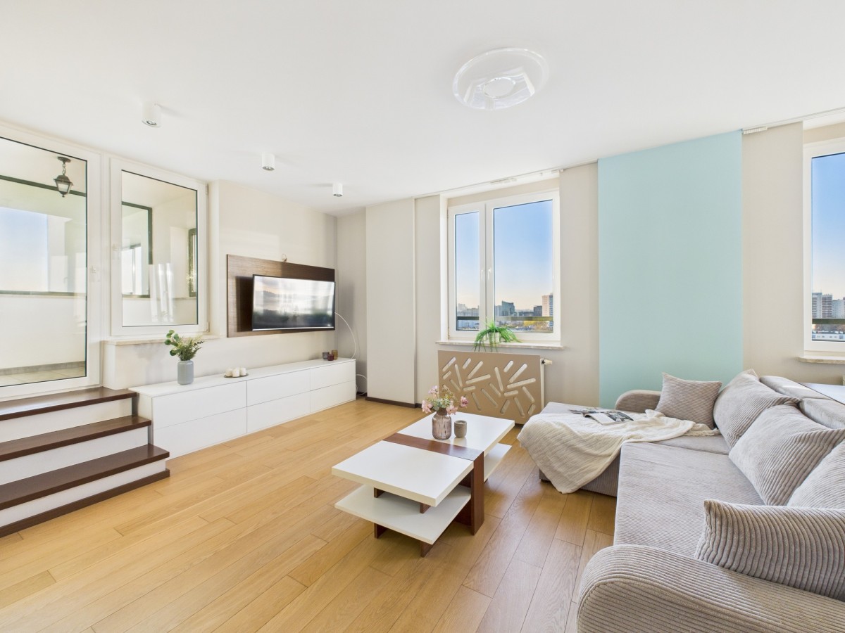 Na sprzedaż słoneczne, przestronne mieszkanie dla wymagającego klienta z wyjątkowym tarasem i ogrodem zimowym na ostatnim piętrze z widokiem na panoramę Warszawy. Położenie: Praga Południe, ul. Sulejkowska 60A.