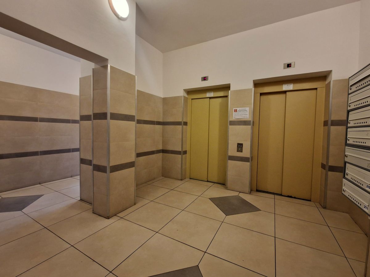 Budynek 10-kondygnacyjny, klatki schodowe w dobrym stanie, duża winda. Brak bezpośredniego sąsiedztwa na klatce schodowej z innymi mieszkaniami.