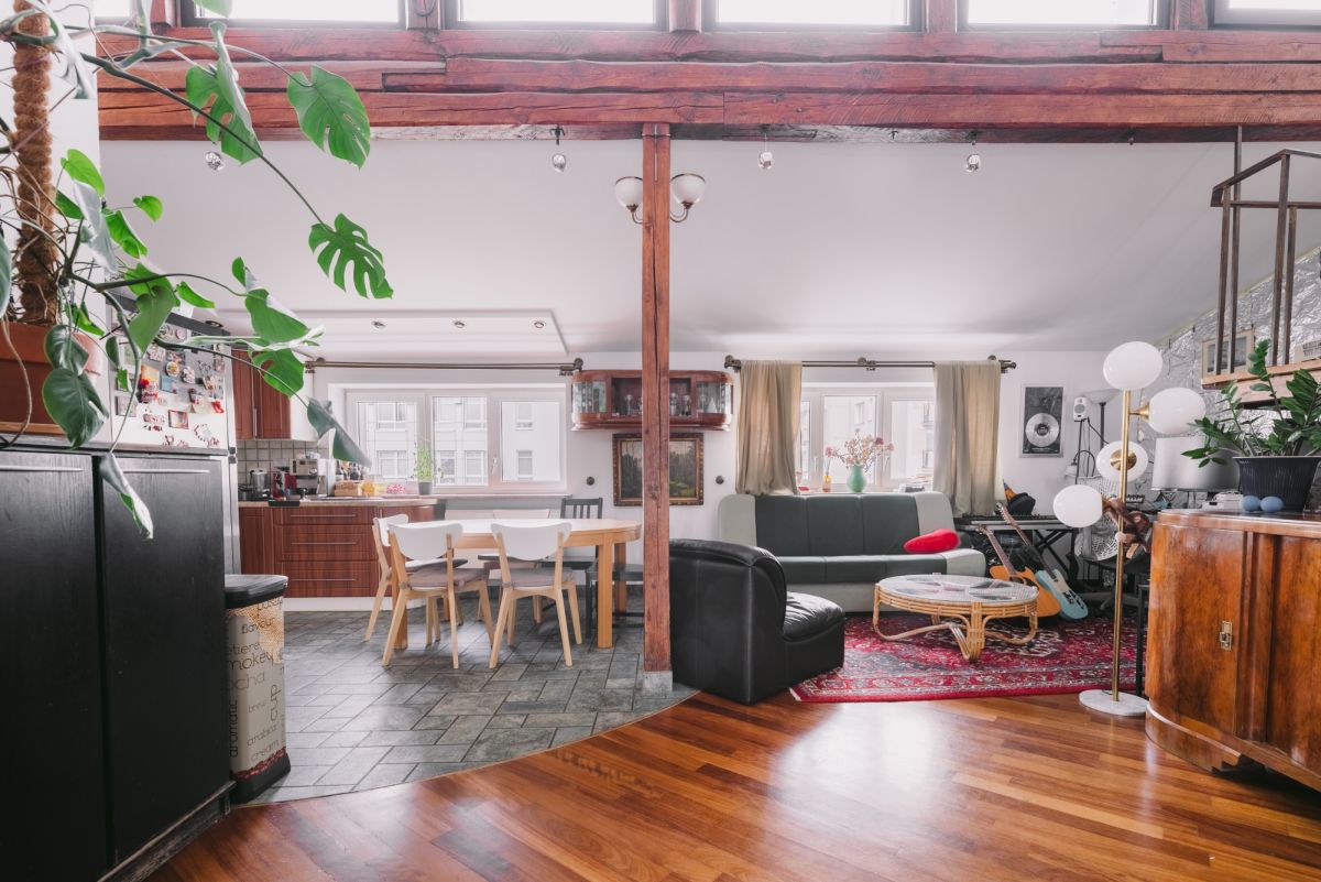 To przestrzeń z duszą - wysokie sufity, oryginalne detale, stylowe wykończenie i duża ilość światła sprawiają, że mieszkanie od pierwszego kroku robi ogromne wrażenie. Skosy obecne na piętrze nie ograniczają komfortu użytkowania - przeciwnie, nadają wnętrzu niepowtarzalnego charakteru i tworzą przytulną, kameralną atmosferę.
