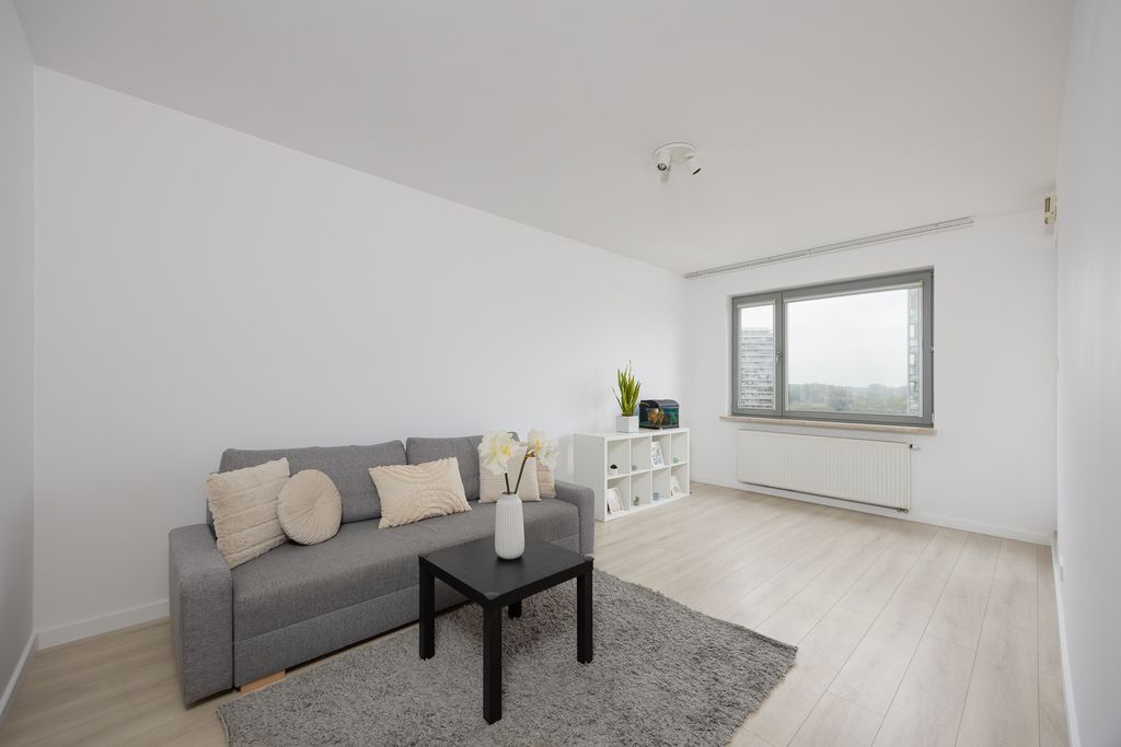 Wnętrze mieszkania jest utrzymane w stonowanej, neutralnej kolorystyce. Na podłogach znajdują się panele oraz gres. Mieszkanie jest dobrze doświetlone – dzięki ekspozycji okien na południe i wschód światło dzienne dociera do wszystkich pomieszczeń przez większość dnia.