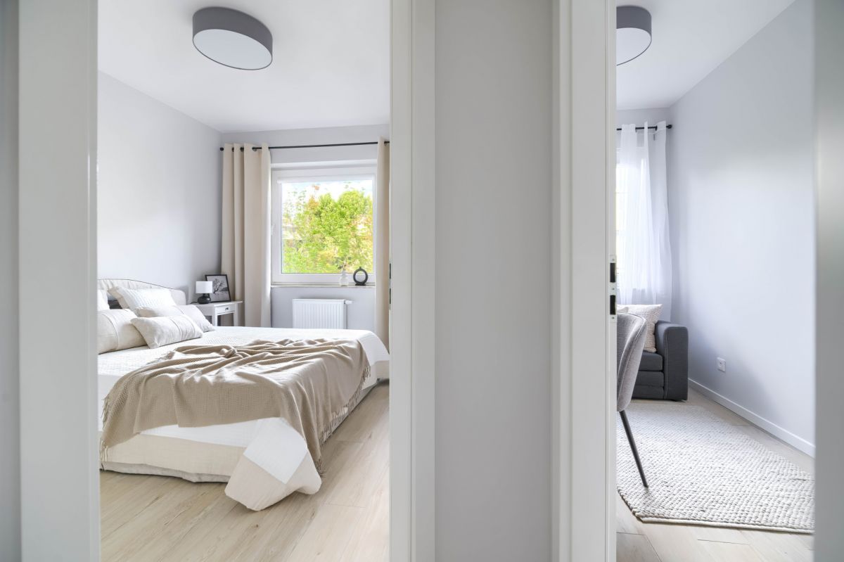 • Funkcjonalny układ: salon z aneksem kuchennym, 2 sypialnie i łazienka