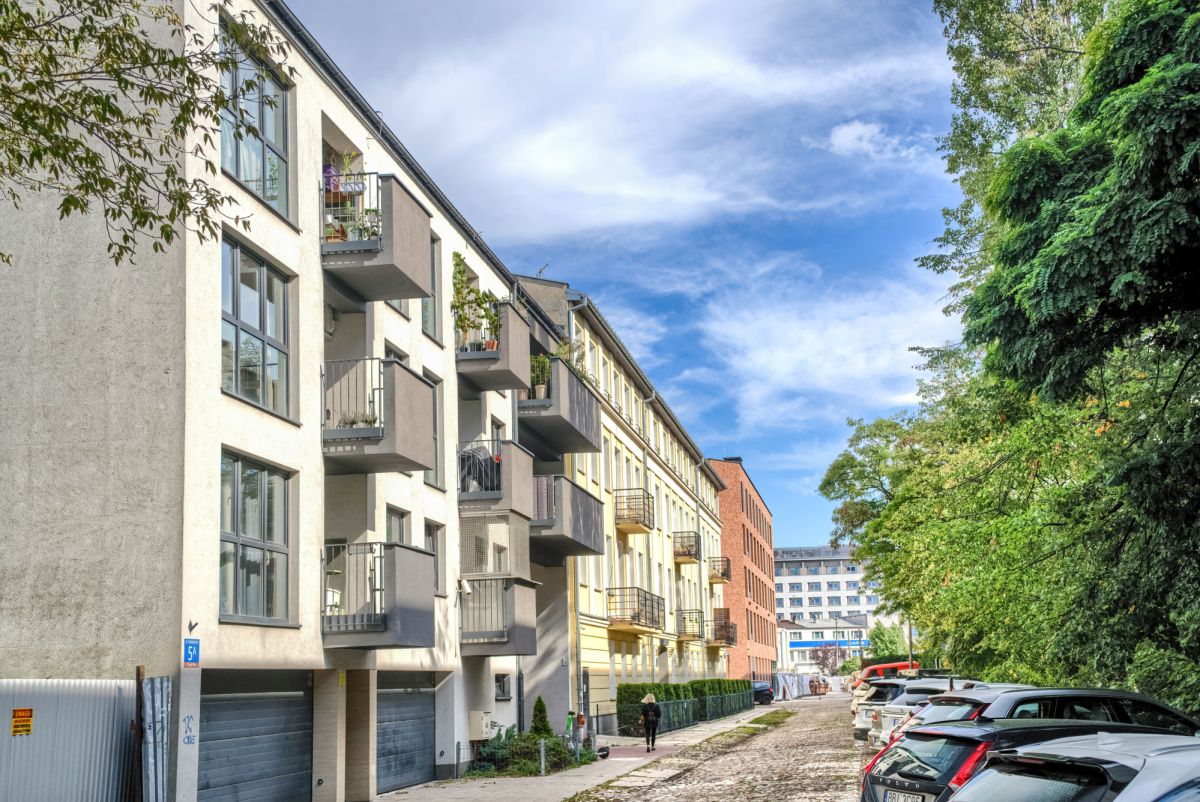 A modern apartment building from 2012, part of a low-rise residential development in Kamionek. Here, contemporary architecture blends with historic tenement houses to create a stylish and coherent urban space. The building is in excellent technical condition, with an elevator, monitoring system, and well-maintained common areas.