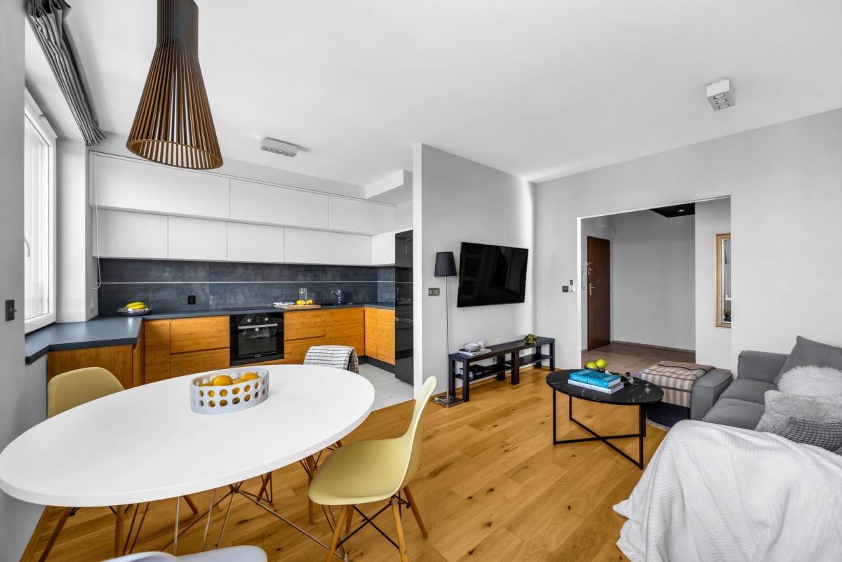 Z przyjemnością prezentujemy jasny apartament położony na 12. piętrze w nowoczesnej inwestycji na warszawskim Gocławiu. To oferta dla osób, które szukają przestrzeni w nowym budownictwie oraz spektakularnych, zapierających dech w piersiach widoków na panoramę stolicy, jakich nie mają niższe piętra.