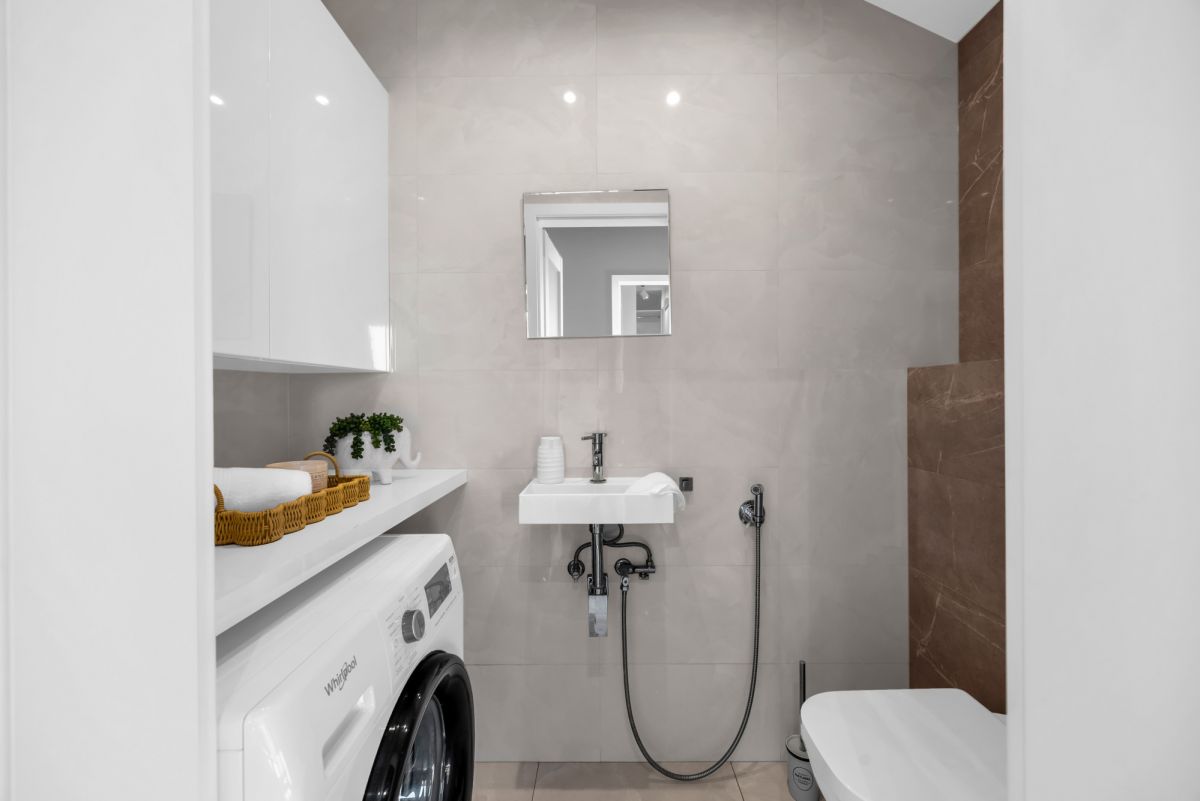 - Toaleta - oddzielne pomieszczenie pełniące również funkcję pralni.