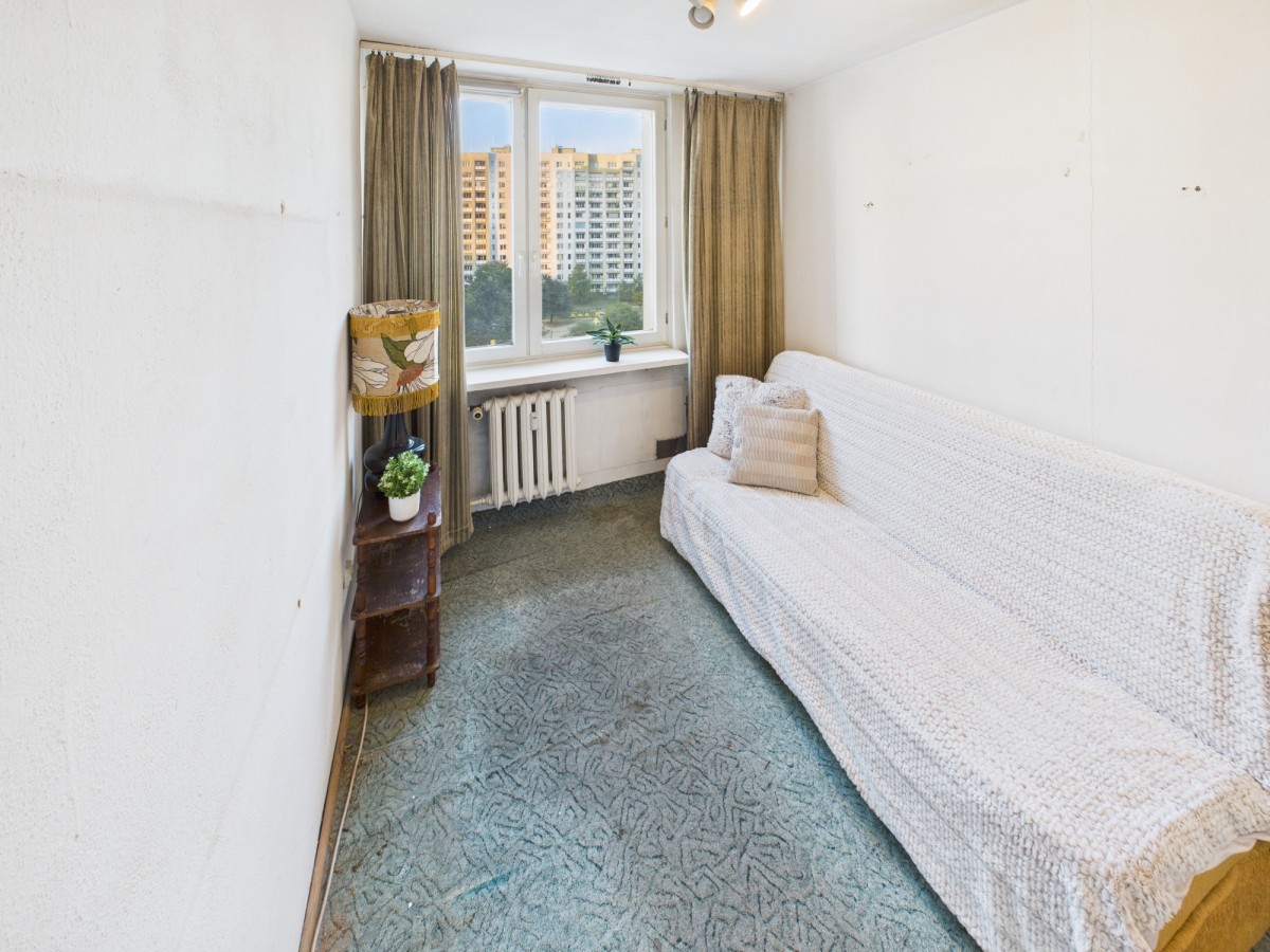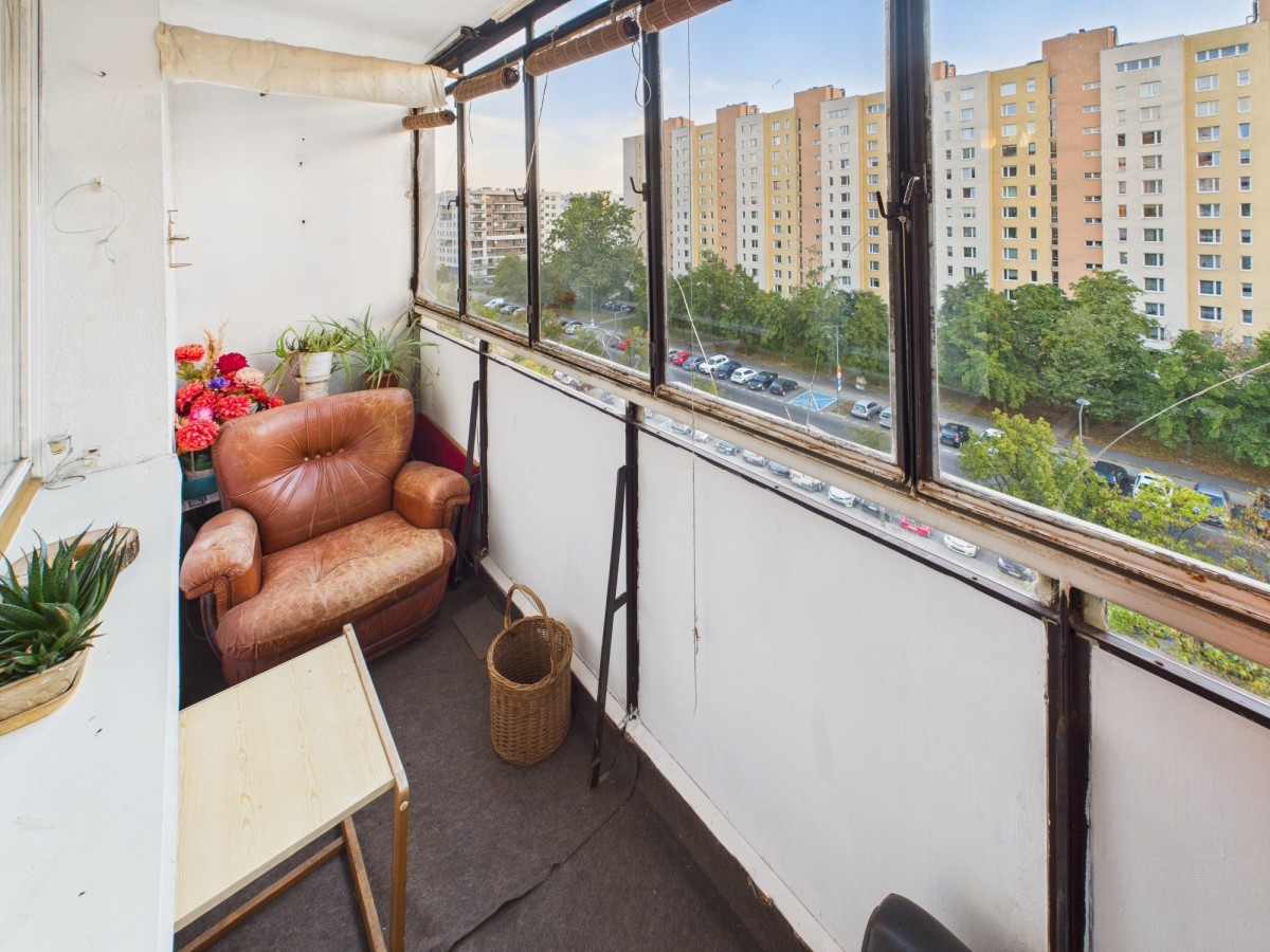 Mieszkanie dwustronne - ekspozycja okien północ-południe. Składa się z trzech niezależnych pokoi, widnej kuchni, łazienki z wanną, osobnego WC oraz przedpokoju. Do mieszkania przynależy piwnica o powierzchni ok. 1.5 m². Z salonu wyjście na dużą loggię (4,4m2).