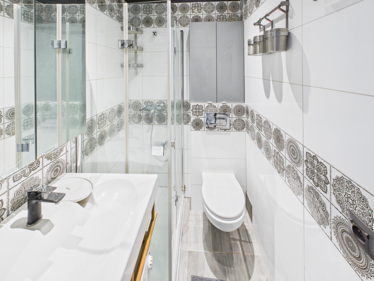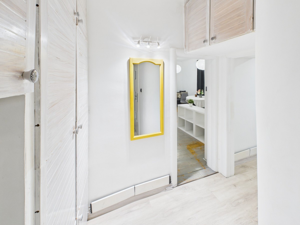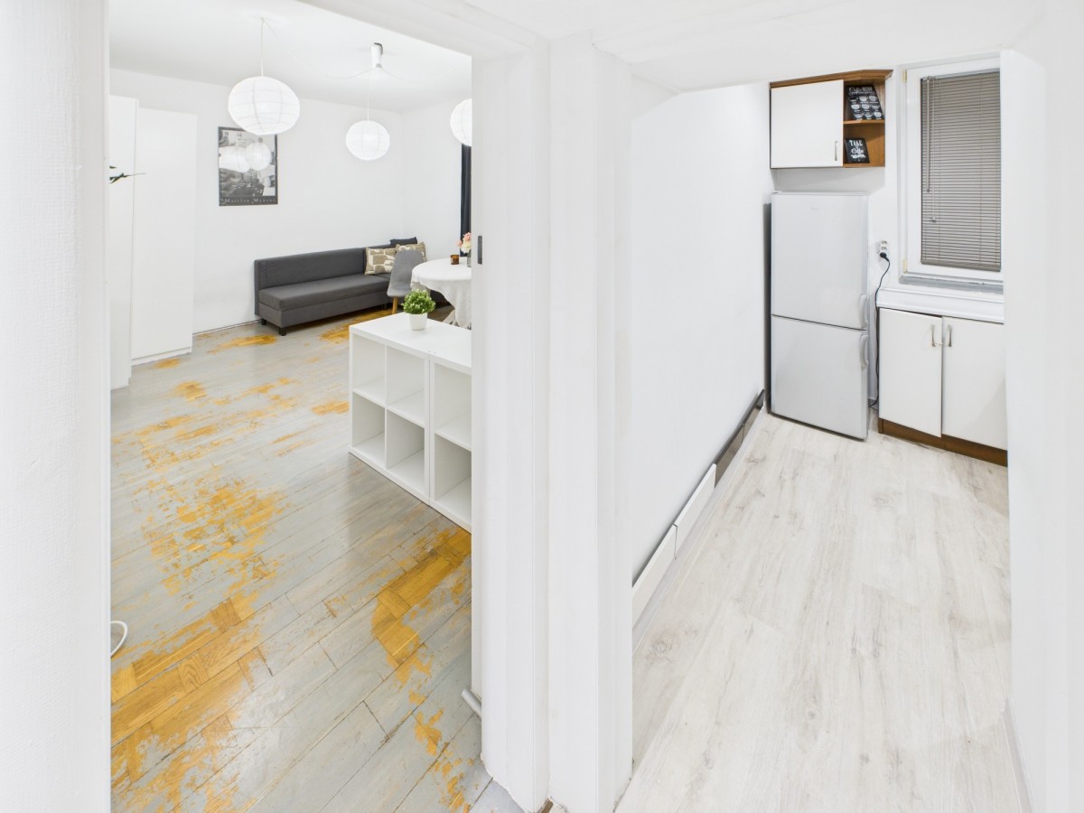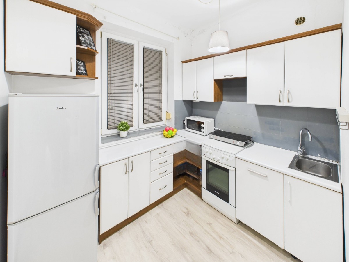 Mieszkanie jest bardzo wysokie - ma aż 2,7 m wysokości, co sprawia, że wnętrze jest przestronne i pełne światła. Okna wychodzą na wschód, a dzięki ich wymianie na PCV w mieszkaniu panuje cisza i komfort termiczny. Lokal składa się z jednego pokoju dziennego, osobnej, widnej kuchni z oknem, łazienki z prysznicem oraz przedpokoju. Na podłodze położone są panele oraz drewniane deski, a instalacja elektryczna została wymieniona.