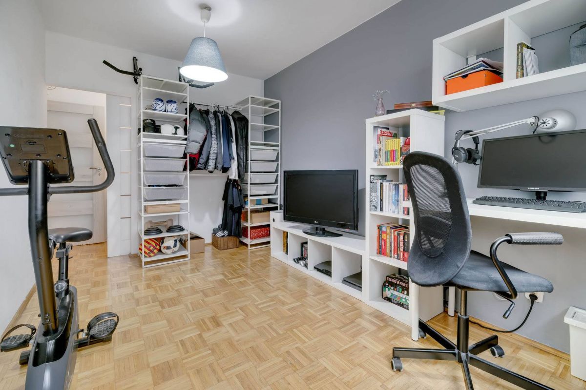 Stan lokalu określono jako do remontu, czyli masz pełną kontrolę nad efektem końcowym. Jednocześnie układ jest na tyle logiczny, że nie wymaga kosztownych zmian konstrukcyjnych. W mieszkaniu jest parkiet w dobrym stanie oraz duże okna. To baza, która ułatwia zaplanowanie nowej aranżacji. Taki stan docenią osoby, które wolą zrobić wszystko „pod siebie”, zamiast dopasowywać się do cudzych decyzji.