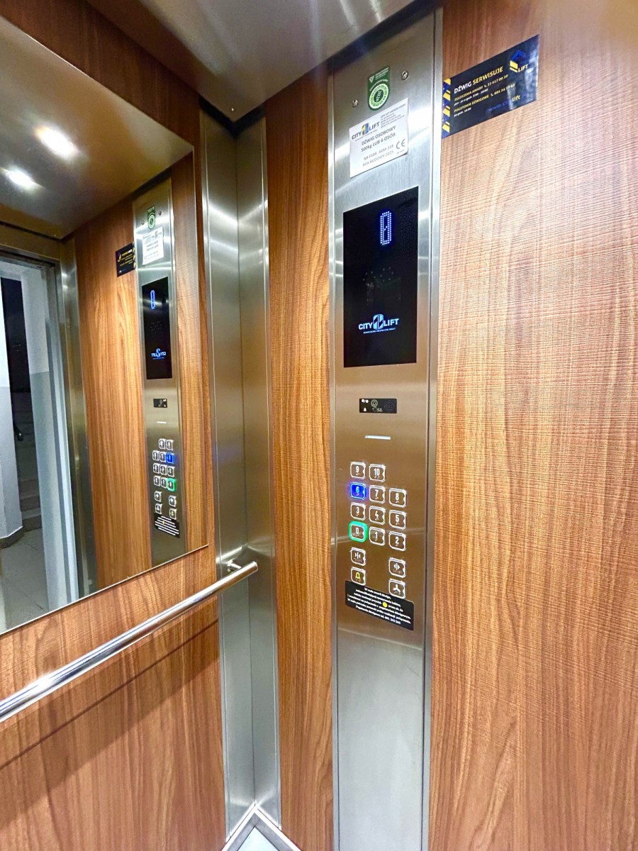 Elewacja budynku po remoncie. Blok ocieplony, wymienione piony i elektryka. Monitoring na klatkach schodowych. Dwa wejścia do bloku, dwie windy w tym jedna nowa, wymieniona w zeszłym roku. Cztery mieszkania na klatce schodowej. Miejsca parkingowe pod blokiem bez strefy płatnego parkowania, istnieje także możliwość płatnego miejsca parkingowego ma parkingu strzeżonym.