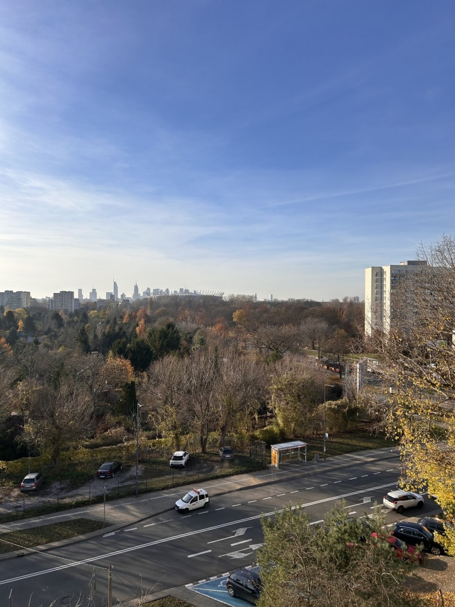 Balkon - powierzchnia ok 6m2 - z pięknym widokiem na zieleń i Panoramę Warszawy.